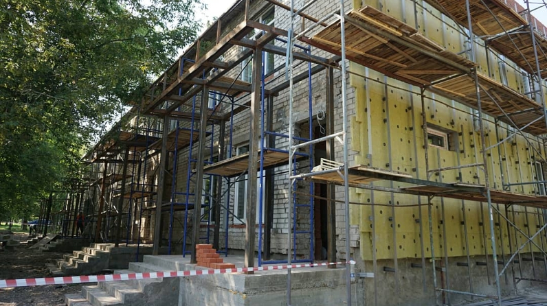 Work was started in June, and it is planned to complete it in October this year. Now workers are making major repairs to the facade, roof, entrance group, put in order the internal water supply, sewerage. An automatic fire alarm system, new medical equipment and furniture will be installed during the major renovation process. 37 million rubles have been allocated for the project, 43 specialists are involved, and contractors are involved.