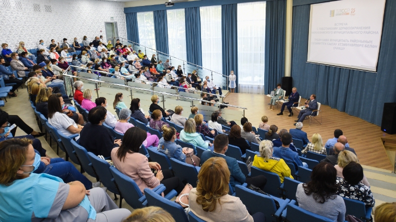 The member of the Federation Council of the Federal Assembly of the Russian Federation from the Republic of Tatarstan Oleg Morozov, met with Nizhnekamsk doctors. Doctors and nurses from all medical institutions of the city gathered in the Assembly Hall of the Consultative and Diagnostic Polyclinic of Nizhnekamsk Central Municipal Multifunctional Hospital.