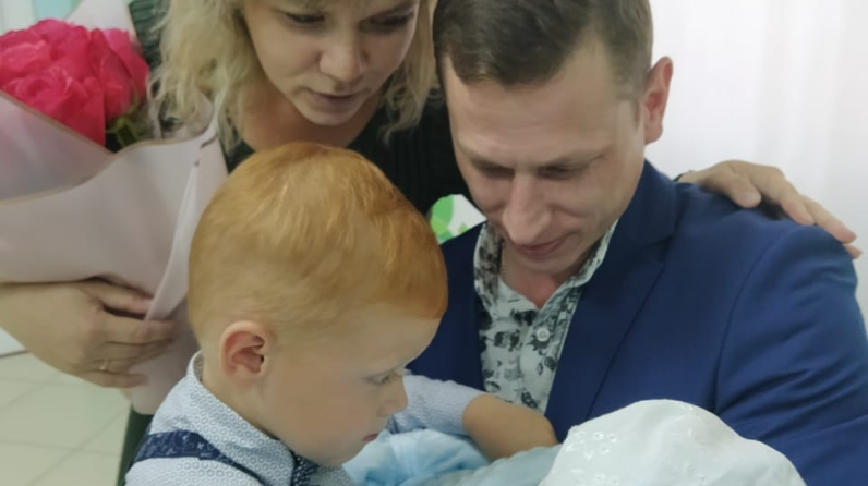 A girl was born in the Petukhovs family of Yegor and Maria. The girl was named Alisa. The older brother Georgiy, three and a half years old, is very excited about his sister's birth. The mother works as a teacher at school #7, and the father works at the local plant.
