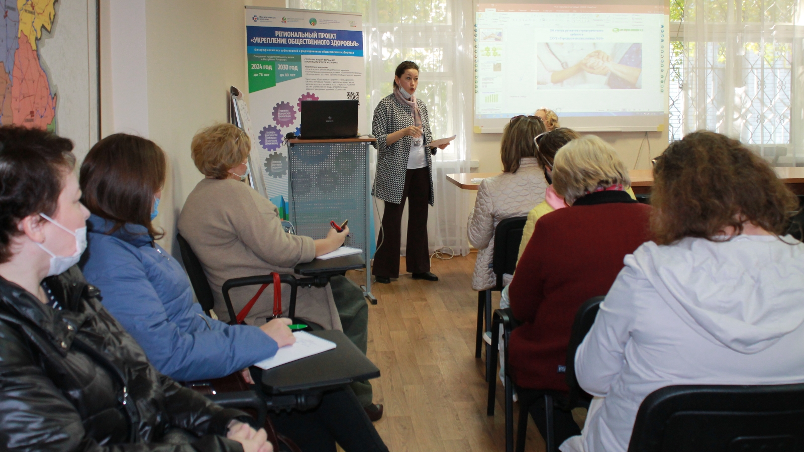 The health of the elderly was covered by the geriatrician of city polyclinic #10. in Kazan, Dr. A. Sh. Davletyarova. In her speech, she spoke about the geriatric office's activities, about medical care for patients who have crossed the 65-year threshold.