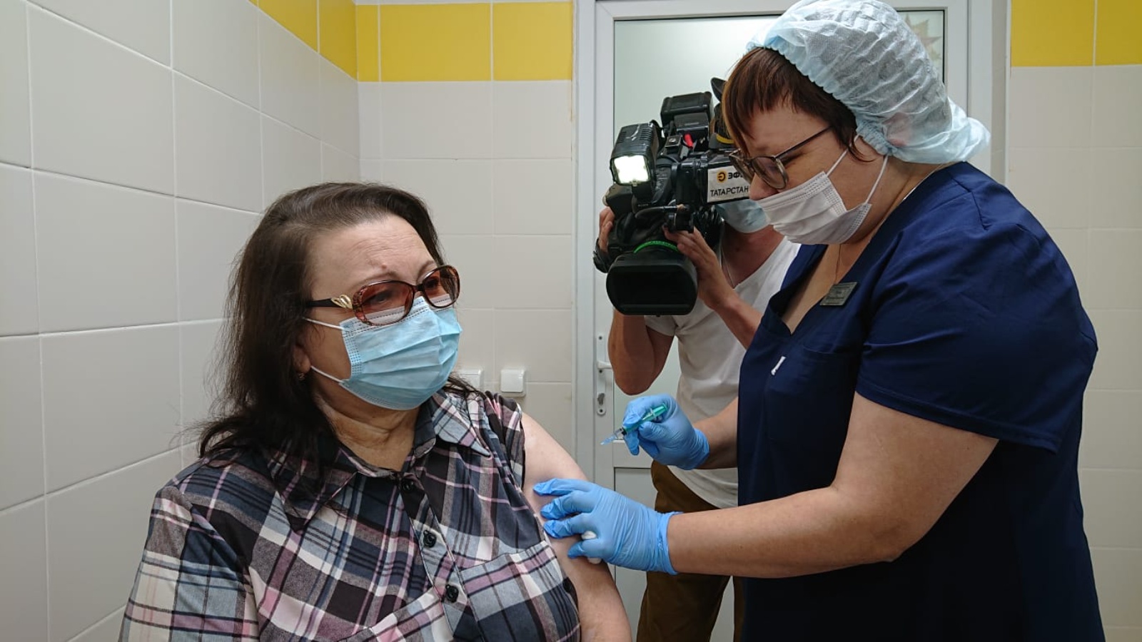 The anniversary dose of the vaccine was received today by a 65-year-old resident of Kazan, Nailya Shagabieva. Six months ago, she had a coronavirus infection and was hospitalized in an infectious diseases hospital.