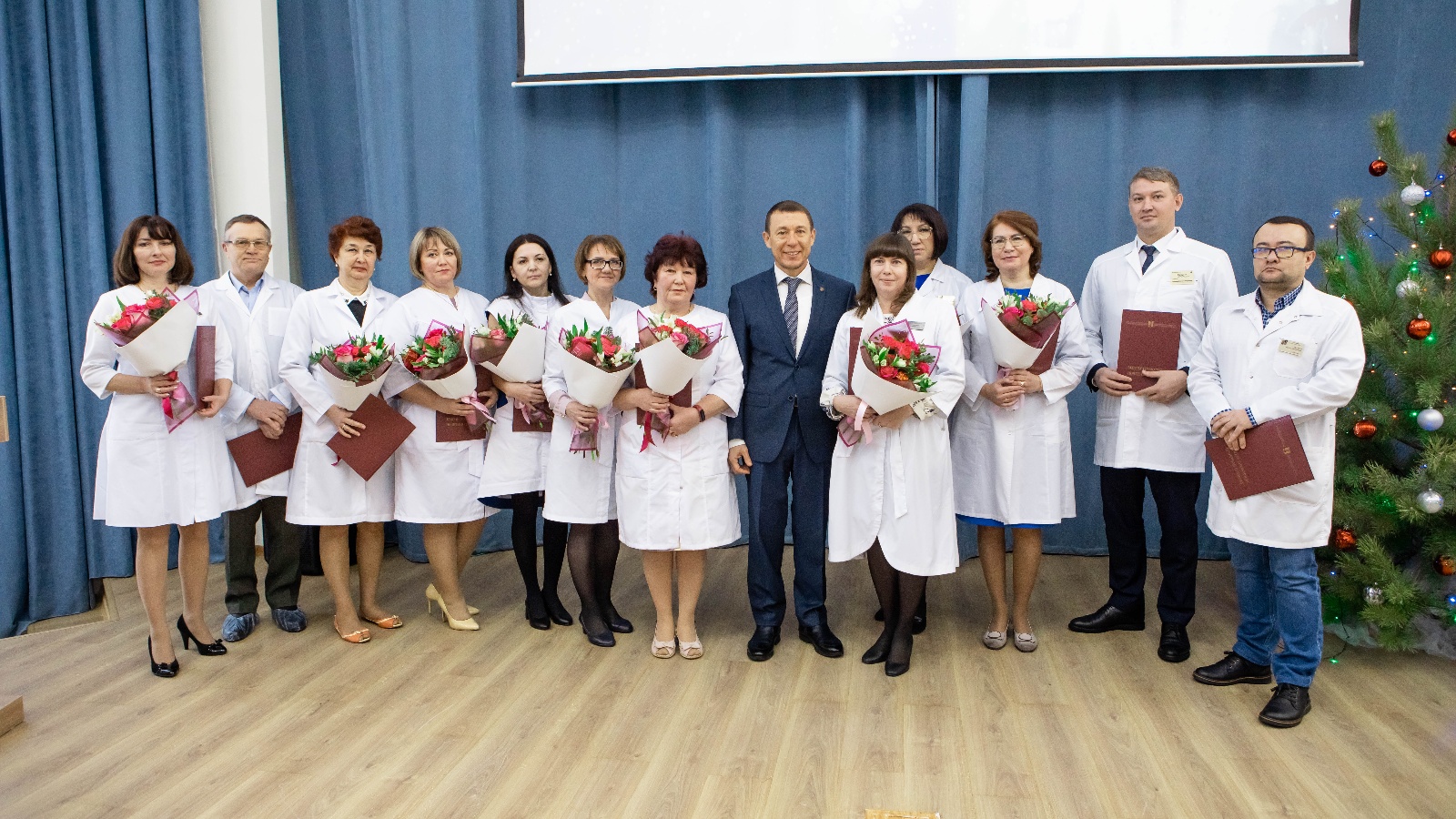 The Head of the Executive Committee of the Nizhnekamsk Municipal District Ramil Mullin and the General Director of PJSC Nizhnekamskneftekhim Airat Safin congratulated the medical workers on the upcoming New Year, thanked them for their selfless work and presented gifts – 6, 000 sets of protective suits, 50 computers and printers for the organization of automated workplaces.