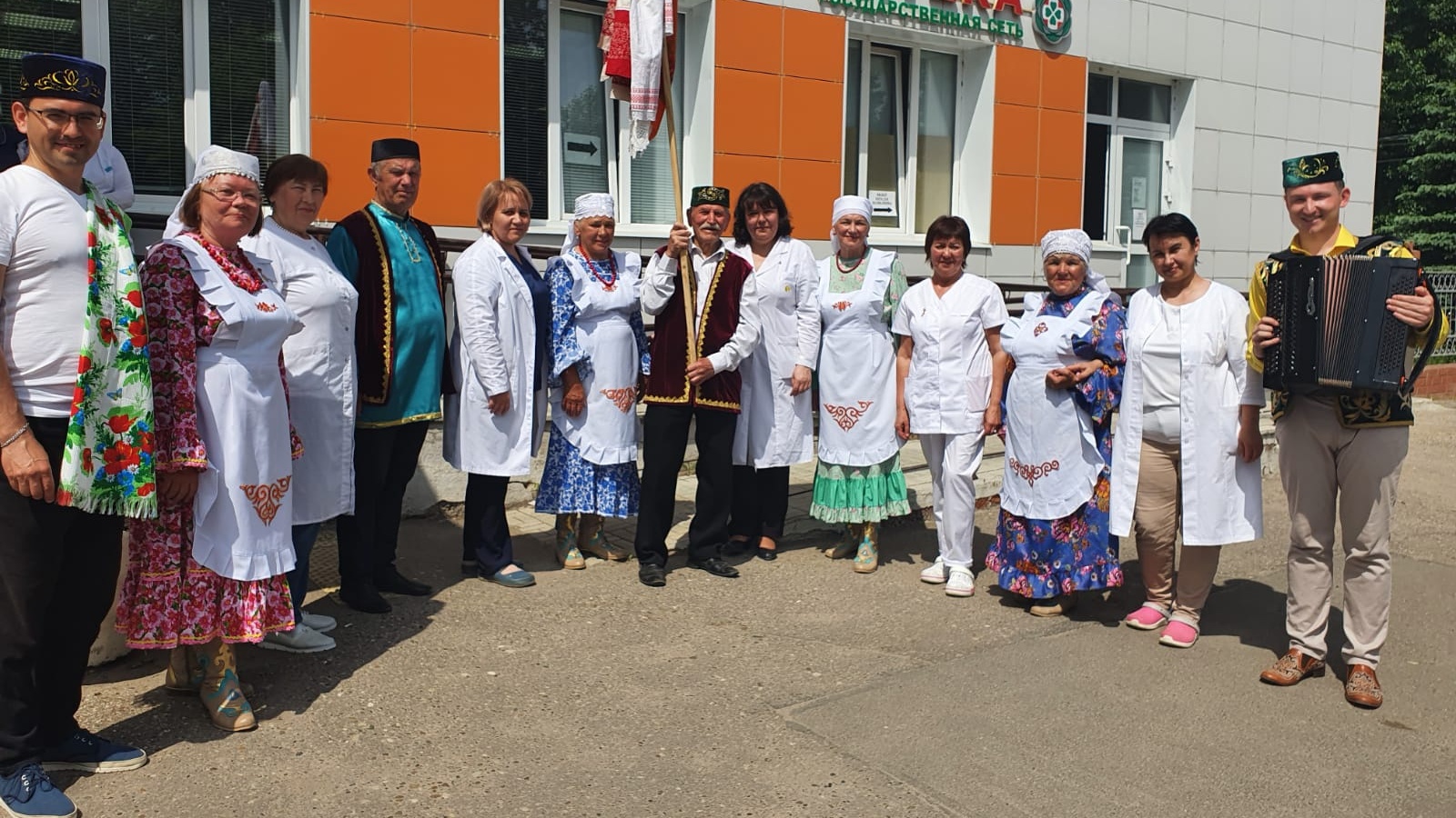 An old and beautiful Tatar rite “Collecting towels" took place on the territory of the SAHI Clinic of the Medical University of Kazan.