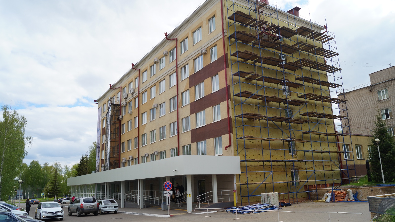 Facade and the passage between the building of the Children's Polyclinic and the in-patient facility of the Yelabuga CDH are being renovated. Renovation work includes insulation with fireproof material, as well as moisture protection of the facade.