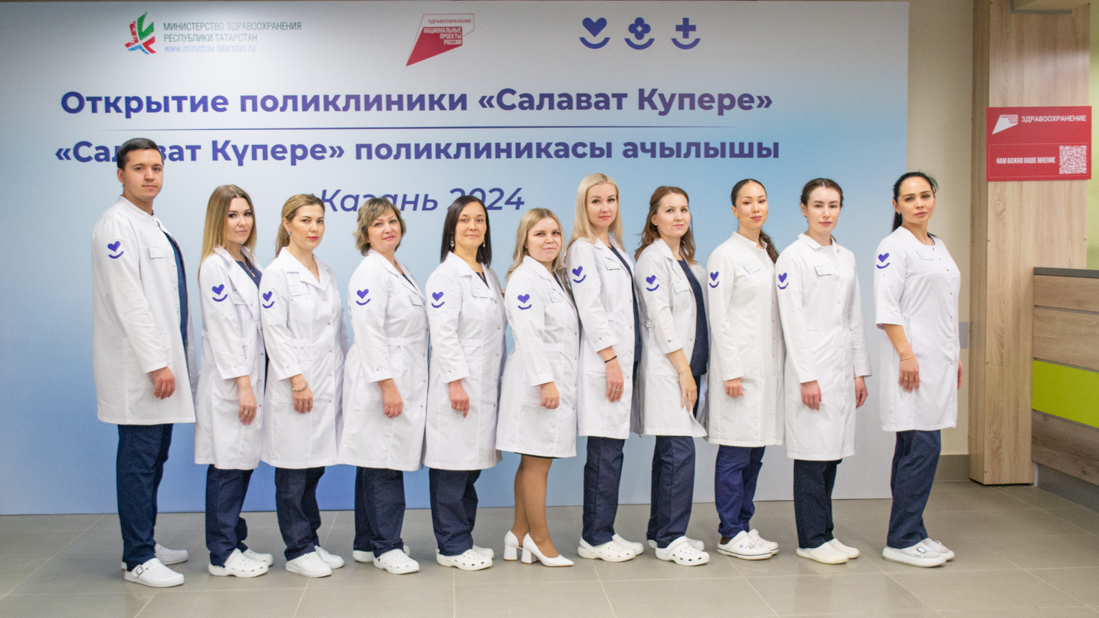 The brand is approved in the form of a heart and a smile, which marks the buildings of primary care medical organizations, interior design, medical equipment, vehicles, office clothes