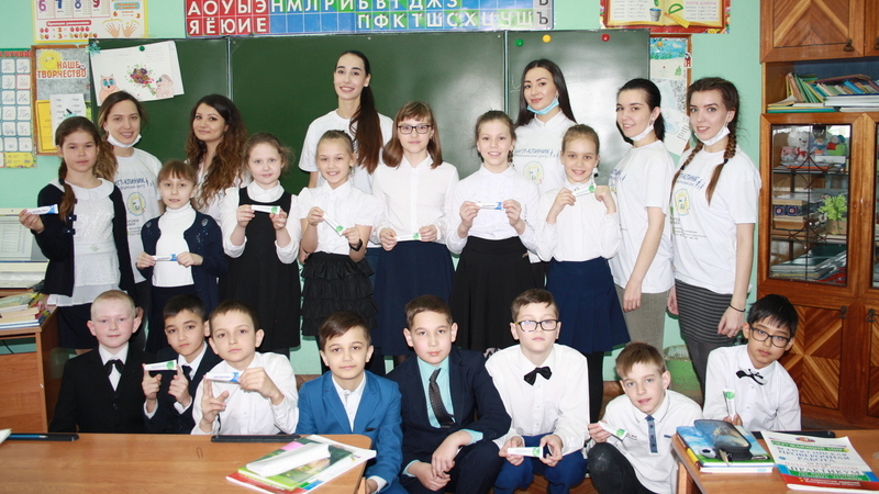 В Осиновской гимназии им. С.К. Гиматдинова прошла социально-оздоровительная акция «Ее величество Зубная щетка». Сотрудники детской стоматологической поликлиники № 5 Казани совместно с волонтерами КГМУ «Здоровые улыбки» провели урок, на котором рассказали ребятам о стоматологических заболеваниях и важности соблюдения гигиены полости рта, а затем - бесплатный профилактический осмотр полости рта. Проверяли на распространенность кариеса, определили гигиенический индекс и подсчитали КПУ, который отражает интенсивность поражения зубов кариесом. Средняя величина показателей КПУ у детей от 8 до 11 лет составила 3,86 – это означает, что при таком значении уровень интенсивности кариеса будет средним. При осмотре волонтеры заполняли специальный бланк осмотров, чтобы отслеживать динамику здоровья зубов у ребят. Медики дали рекомендации и родителям на отдельных бланках.