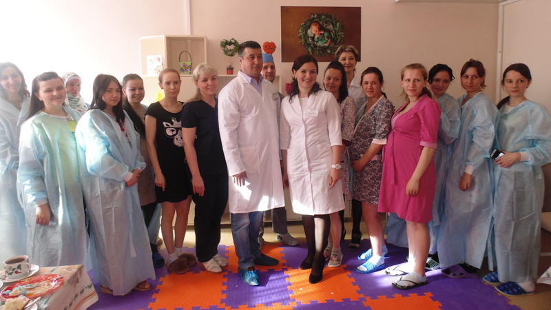 Затем в больнице прошло открытие специальной комнаты для беременных. Светлая, уютная комната с мягкими диванами, телевизором, колыбелью для малышей и другими предметами интерьера для занятий с будущими мамами.