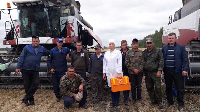 С началом уборочных работ медицинские работники Новошешминского муниципального района усилили контроль за охраной здоровья хлеборобов и организовали выезды в поле. Для работников сельхозпредприятий провели лектории по профилактике сердечно-сосудистых заболеваний и роздали буклеты по оказанию первой помощи при подозрении на острый инфаркт миокарда и инсульте. Кроме того, медики дали рекомендации по поведению во время жары.