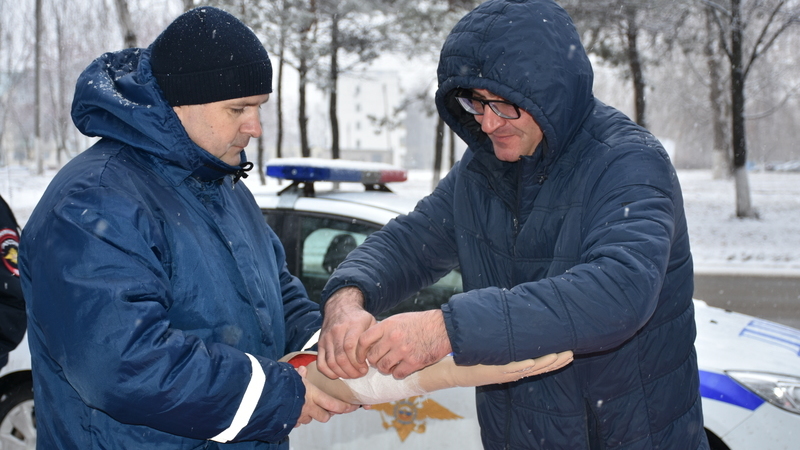 За час автоинспекторы остановили 33 автомобиля, волонтеры-медики проверили аптечки автовладельцев, а главный внештатный специалист по ГО и ЧС Управления здравоохранения по НМР Андрей Силантьев показал на манекенах, как остановить кровотечение, сделать искусственное дыхание и наложить шины. Как оказалось, многие водители знают, что при кровотечениях сначала нужно наложить на травмированную конечность жгут и только потом - повязку. Но не все смогли вспомнить, как отличить венозное кровотечение от артериального и как их остановить.