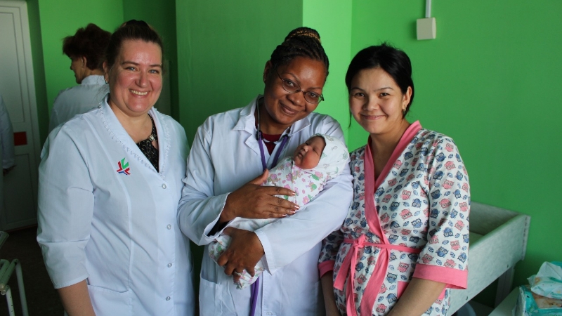 Зарубежные гости зашли в палату к молодой маме и новорожденной девочке. Трейси Белл осмотрела малышку и убедилась в том, что она полностью здорова. Американцы высоко оценили Лаишевскую ЦРБ и поблагодарили персонал за теплый прием.