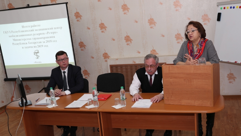В Государственном казенном учреждение здравоохранения Республиканский медицинский центр «Резерв» Министерства здравоохранения Республики Татарстан 28 февраля 2019 года прошел Итоговый Медицинский совет. В заседании совета приняли участие заместитель министра здравоохранения Республики Татарстан Яркаева Фарида Фатыховна и начальник второго отдела Министерства здравоохранения Республики Татарстан Усов Сергей Владимирович. С основным докладом выступил директор Шарипов Ильдар Салимзянович. Он доложил об итогах работы центра за 2018 год и поставил новые задачи на текущий 2019 год. Подводя итоги заместитель министра здравоохранения РТ Яркаева Фарида Фатыховна в своем выступлении подчеркнула на необходимость реализации национальных проектов и ликвидации кадрового дефицита, решение новых задач по снижению показателей смертности и улучшение демографических показателей. Завершился Медицинский совет обсуждением актуальных вопросов по деятельности работы с принятием Решения Медицинского совета.
