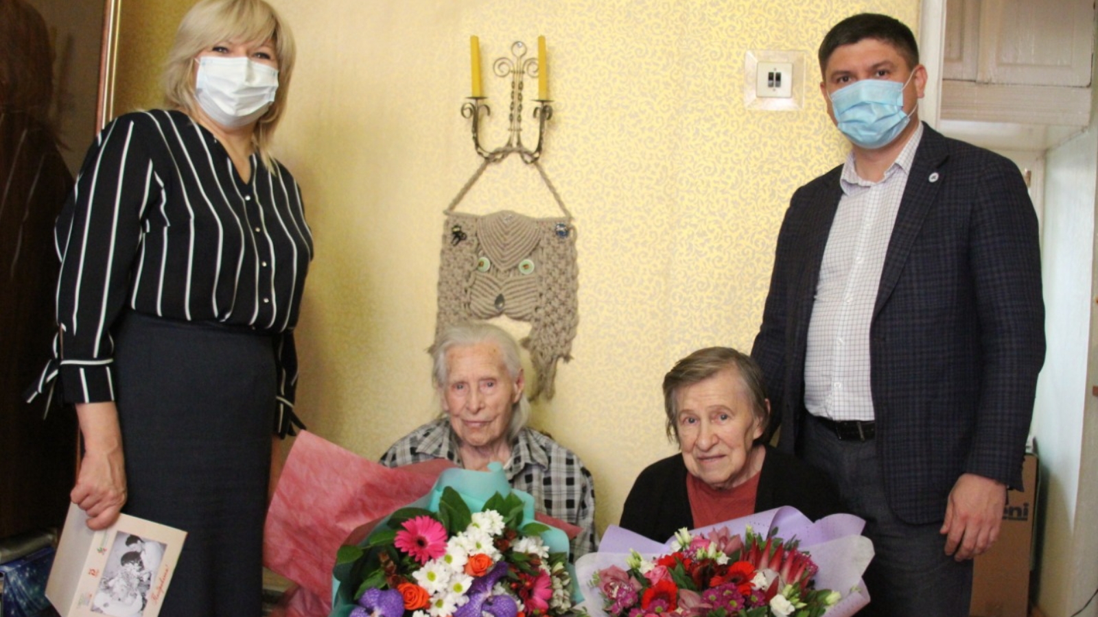От имени Министерства здравоохранения РТ ветерана Великой Отечественной войны, военно-полевого хирурга Татьяну Андреевну Емелину и ее сестру, ветерана отрасли, Анну Андреевну поздравил управляющий делами ведомства Идеал Айзетуллов и руководитель отдела кадров Лилия Аберхаева.