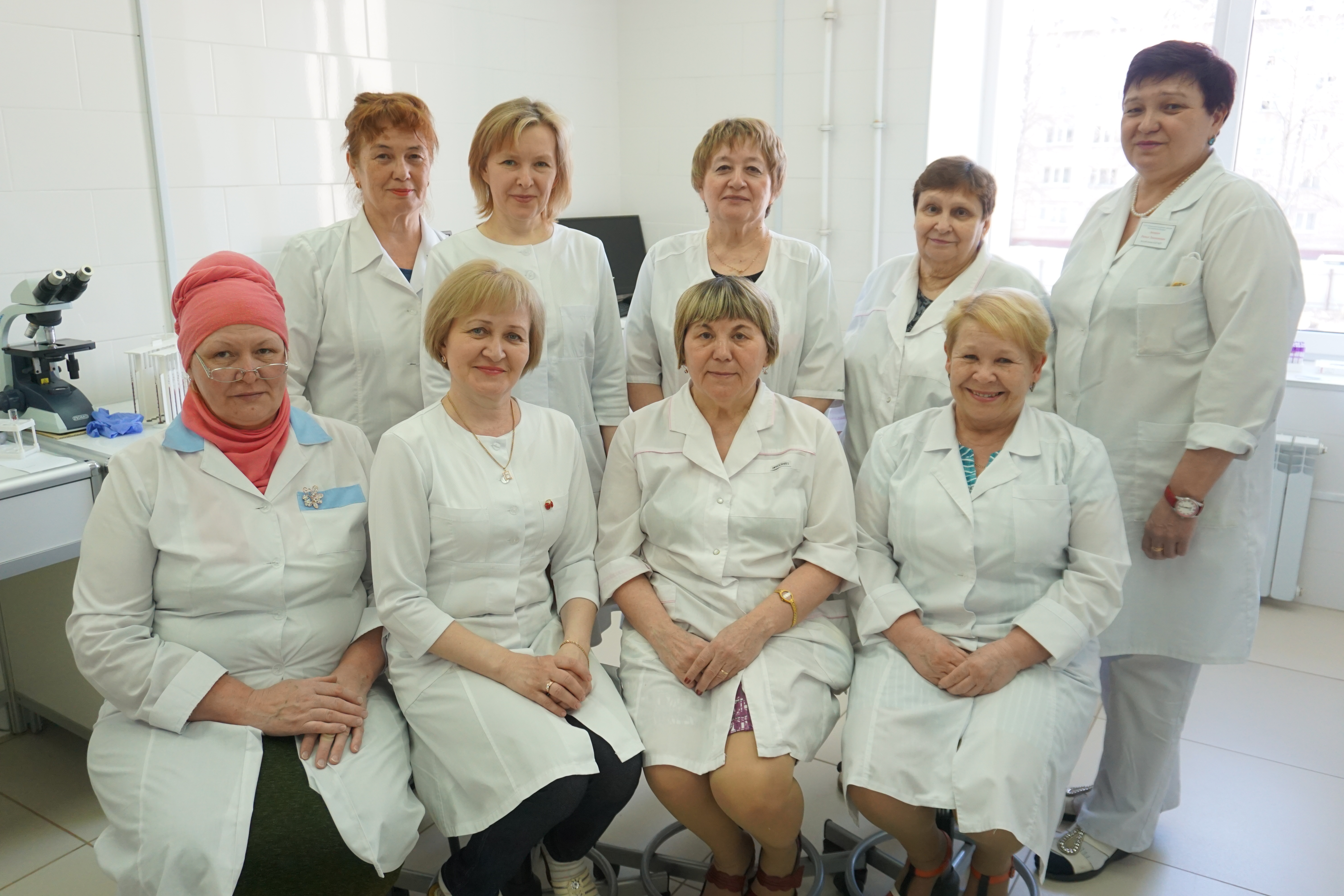 «Коллектив клинико-диагностической лаборатории сложился после объединения в 2009 году. Многих в своём коллективе я знаю с 1985 года. Я с ними выросла. Здесь есть мои одноклассницы, мои одногруппницы, есть наставники, которые меня всему научили. Коллектив стабилен, если от нас и уходят, то только на пенсию. Мне кажется, это показатель того, что всем здесь комфортно.