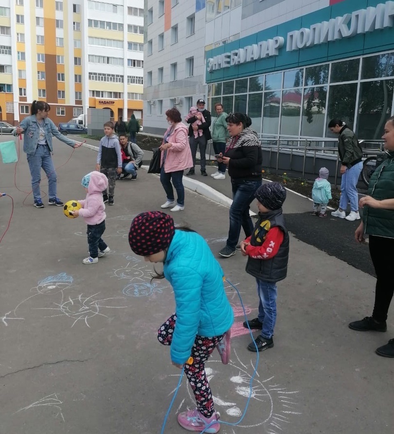 Дети отлично повеселились, рисовали на асфальте, участвовали в конкурсах. Праздник завершился общей фотографией участников праздничного мероприятия.