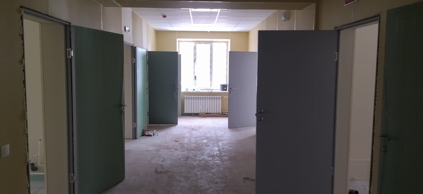 В настоящее время строительные бригады завершили внутреннюю отделку помещения, заменены оконные и дверные блоки, система водоснабжения, водоотведения, теплоснабжения, заменены вся электрика. Закуплено необходимое оборудование и новая мебель. Фасад и кровля здания остались прежними. Планируется, что прием пациентов в обновленном здании больницы начнется в конце этого года.