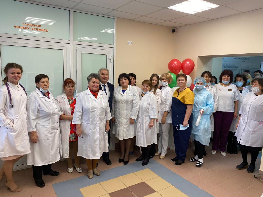 В городе Азнакаево завершился капитальный ремонт детской поликлиники и там возобновляется прием маленьких пациентов. В торжественной церемонии открытия обновленного здания участвовал Глава -Председатель Совета Азнакаевского муниципального района Марсель Шайдуллин, главный врач Азнакаевской ЦРБ Ильдар Шигапов, представители предприятий, внесших вклад в ремонтные работы, ветераны здравоохранения. .