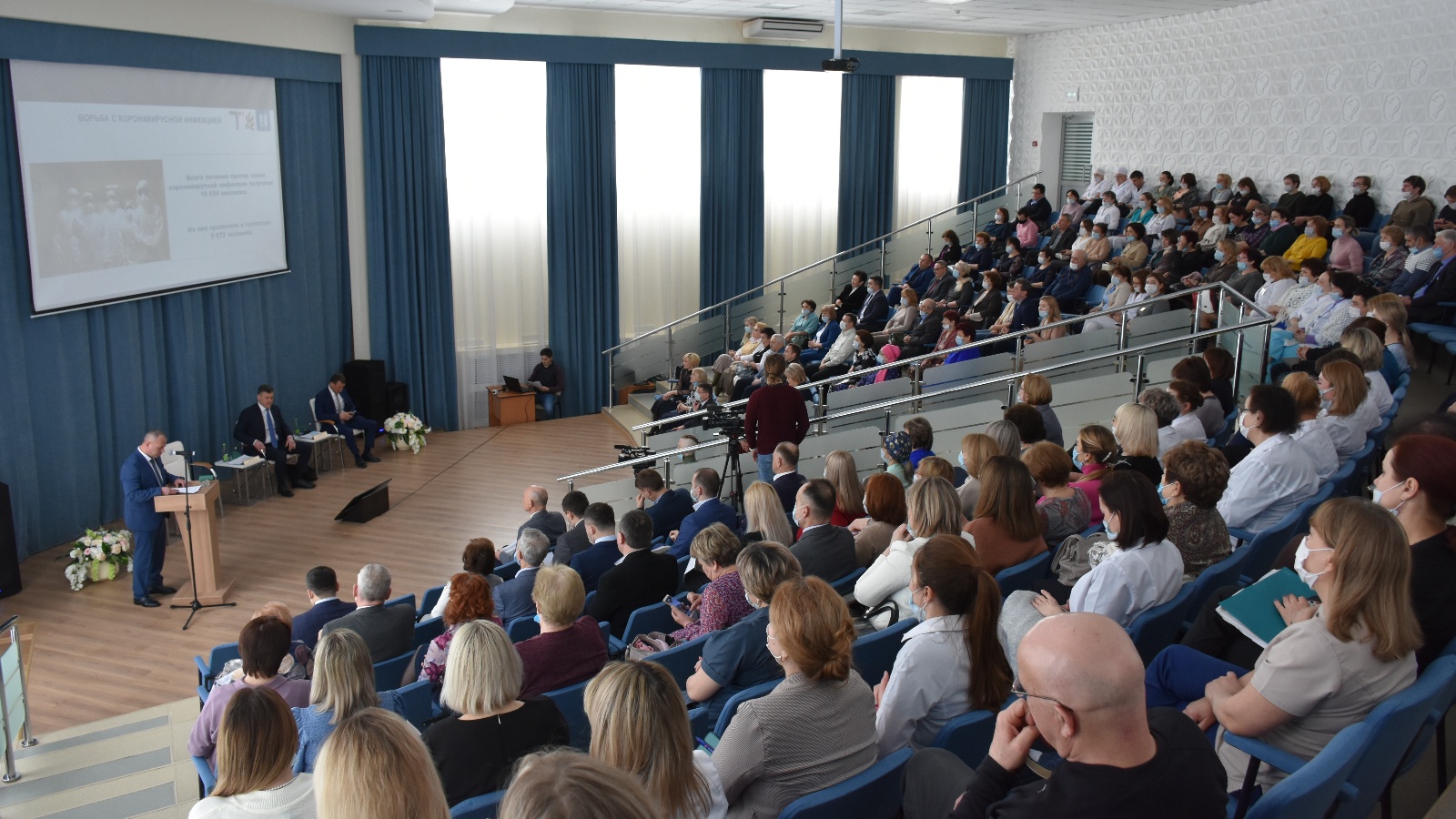 Руководитель Управления здравоохранения Сергей Мерясев в своём докладе отметил, что второй год медицинские работники продолжают работать в условиях пандемии. В прошлом году более 10 тысяч жителей города и района переболели коронавирусной инфекцией, половина из них получили лечение в стационаре. Пик заболеваемости пришёлся на ноябрь – тогда в красной зоне было развёрнуто 400 коек.