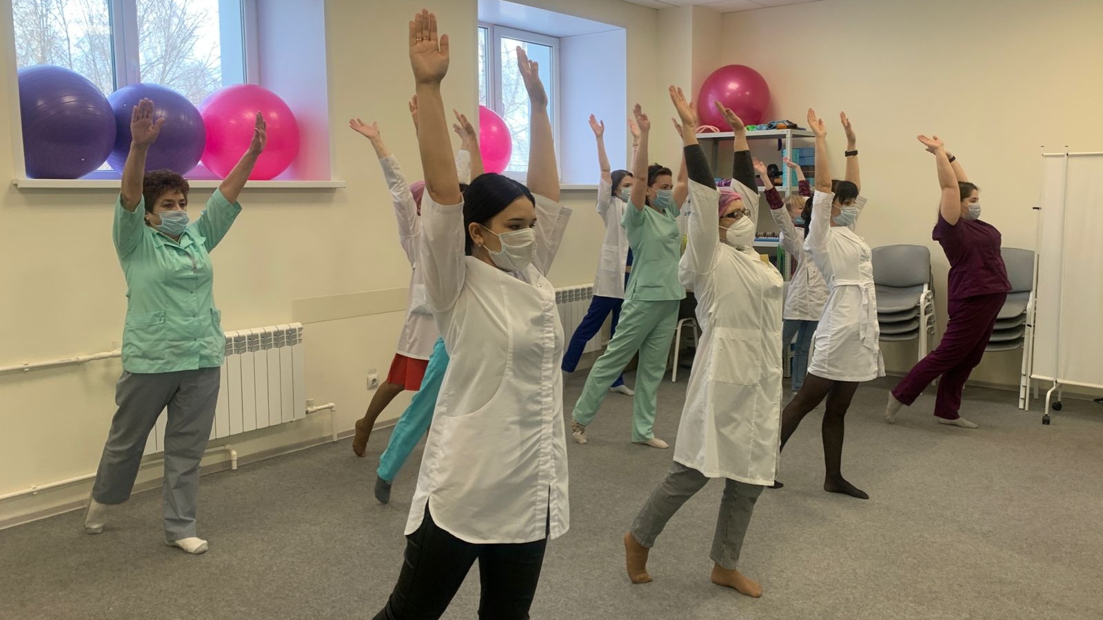 Сегодня утро в поликлинике № 7 города Набережные Челны началось с производственной гимнастики. До начала рабочего дня в 6.45 часов медики провели в отделениях зарядку.