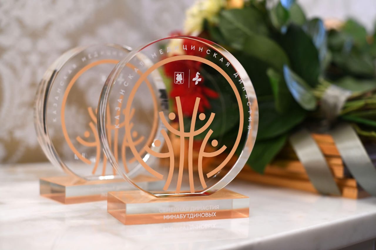 Каждой династии вручили статуэтку «Чествование медицинской династии», благодарственное письмо от мэра Казани, а также подарочные сертификаты на генеалогическое исследование и семейную фотоссесию.