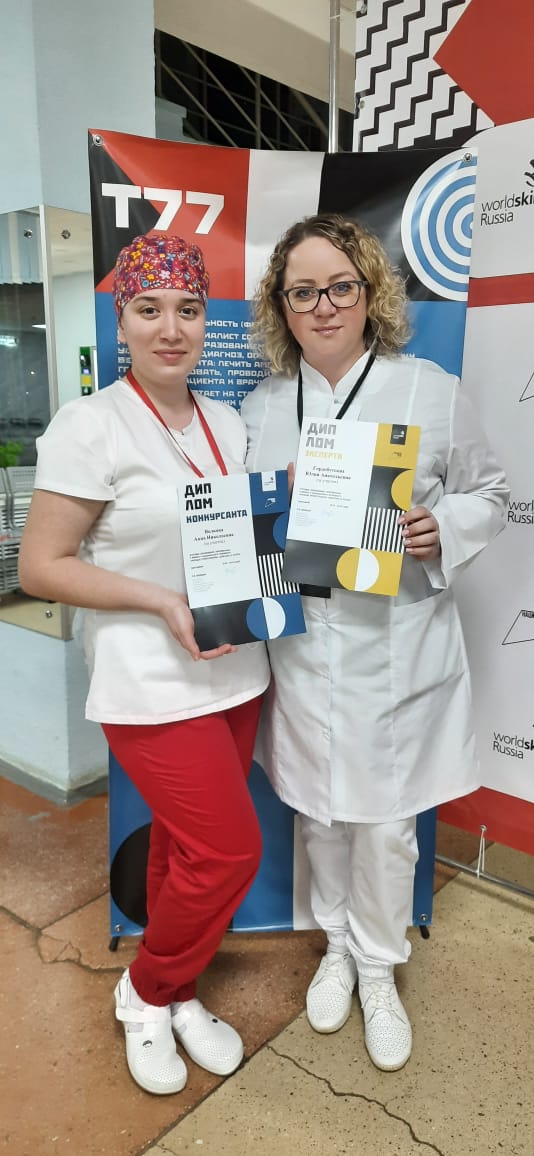 Анна Волкова заняла 3 место по компетенции Лечебная деятельность (фельдшер). Экспертом-компатриотом выступила преподаватель профессиональных модулей Юлия Анатольевна Гордобутских.