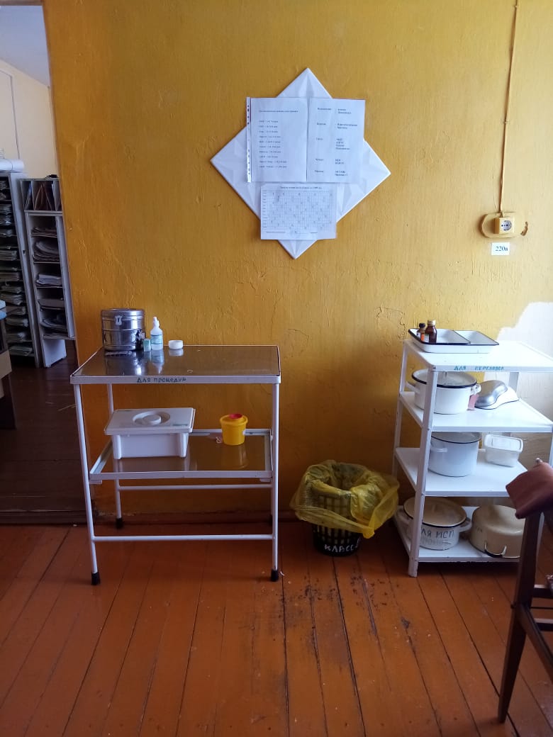Сейчас пациентов принимают в приспособленном помещении площадью 31 кв.м в здании Аланского детского сада. Расстояние до ЦРБ 12 км.
