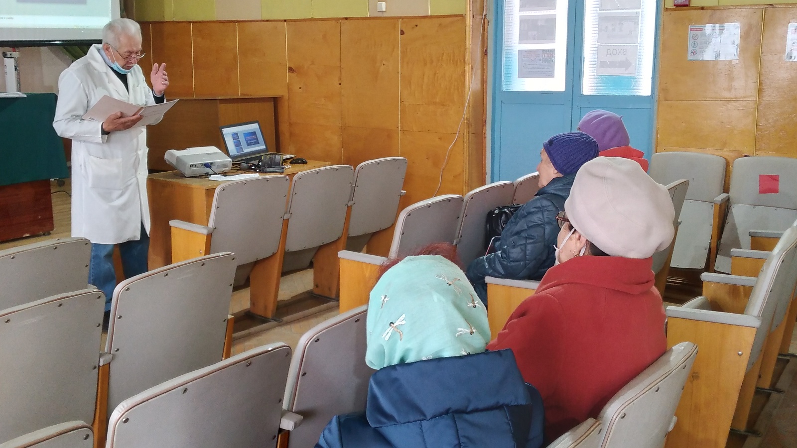 Так же объяснял о допустимых мерах физических нагрузок, правильном питании при артериальной гипертонии, обучил в какое время и как правильно измерять артериальное давление, ответил на вопросы слушателей.