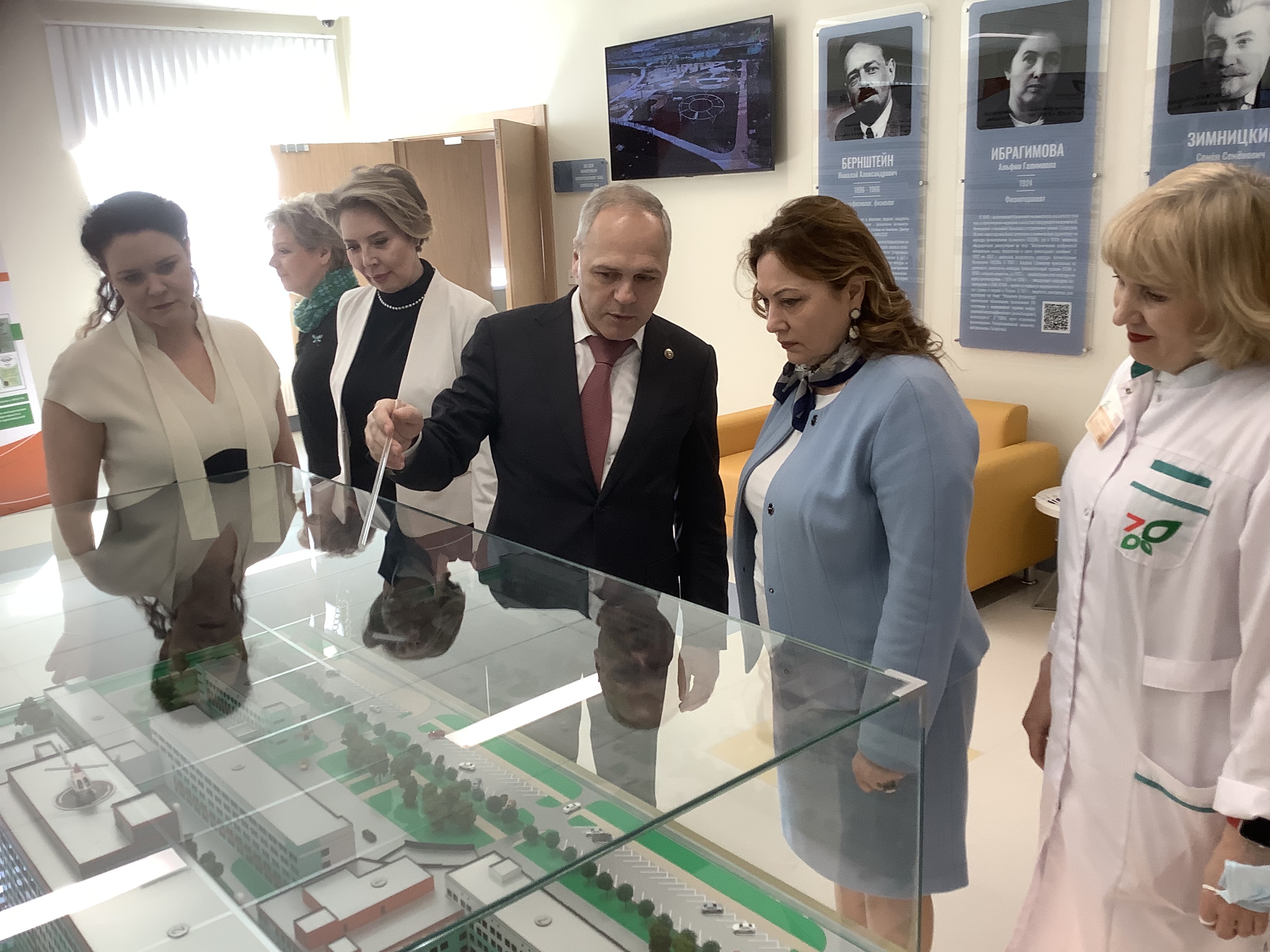 Директор Департамента медицинской помощи детям, службы родовспоможения и общественного здоровья Министерства здравоохранения России Елена Шешко посетила лечебно- реабилитационный центр в Казани, отрытый на базе городской клинической больницы №7. Гостей сопровождал министр здравоохранения Республики Татарстан Марат Садыков.