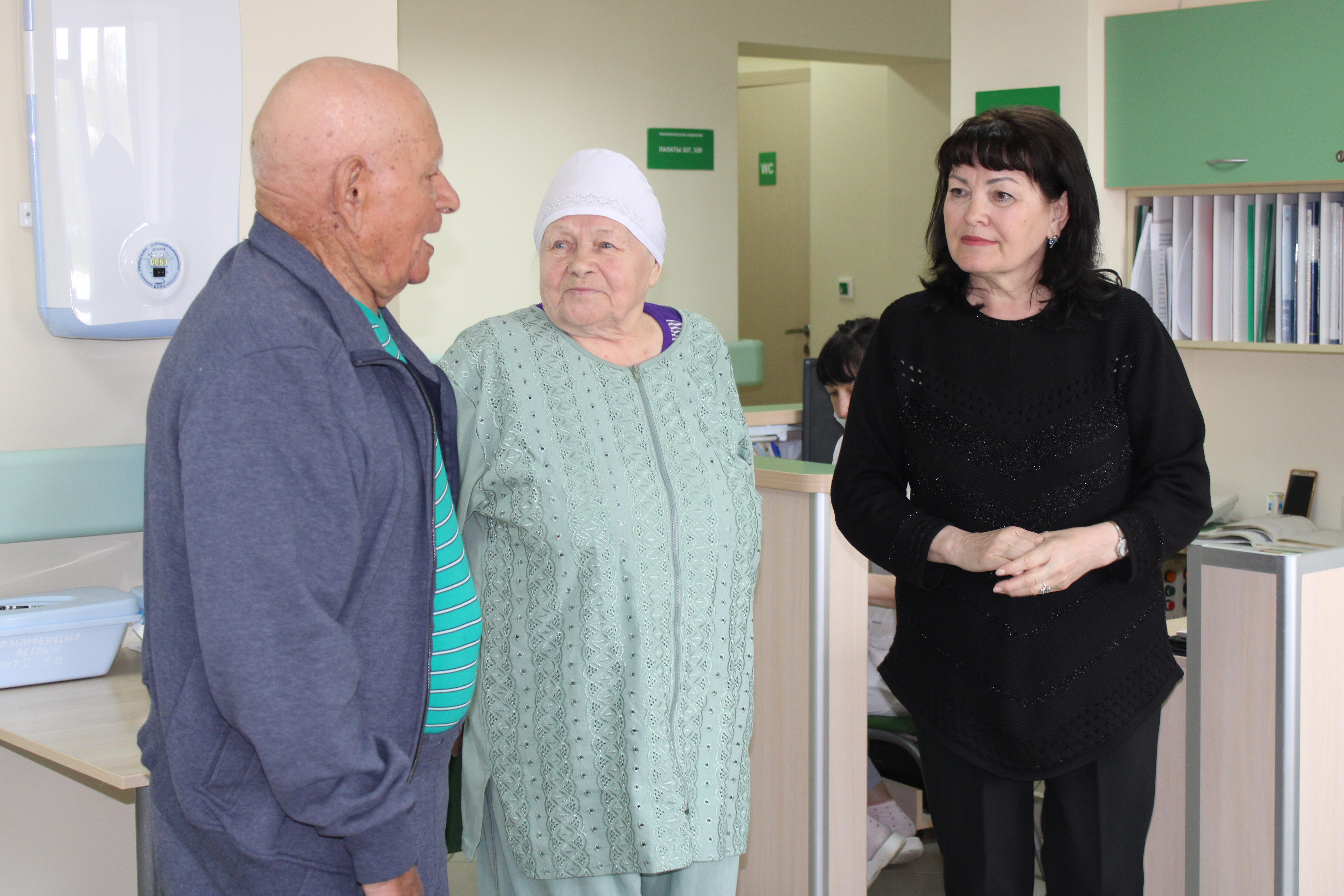 Коридоры госпиталя – это еще и место встречи давних друзей и знакомых. Разия апа Габдрахмановна рассказала, как они с Муфтахом Нуртдиновым вместе проводили Уроки мужества для детей на посту №1. Муфтах ага Ансапович, участник ВОВ, тоже сейчас проходит лечение здесь.