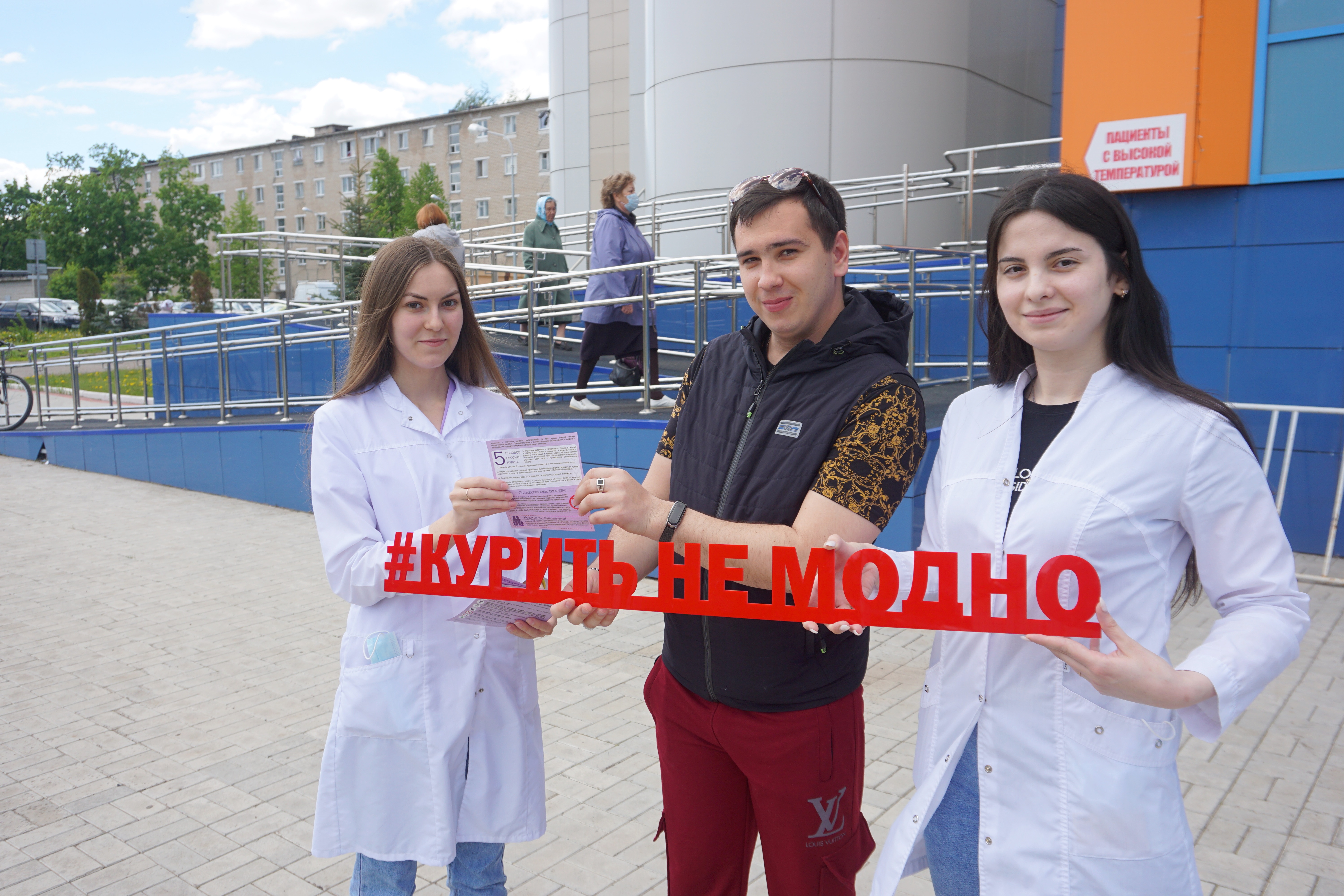 Медицинские работники вместе с пациентами фотографировались с хештегом «Курить не модно».