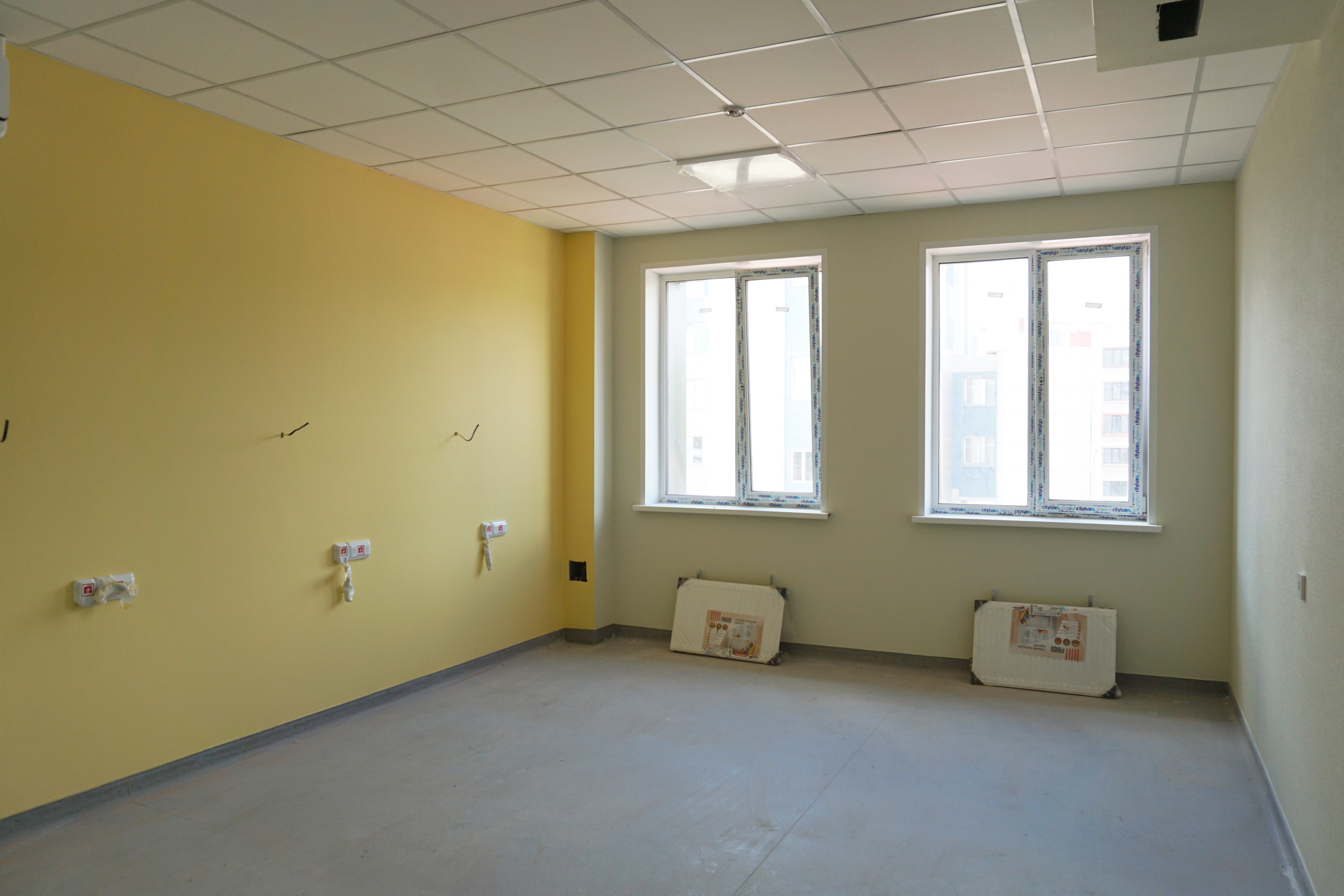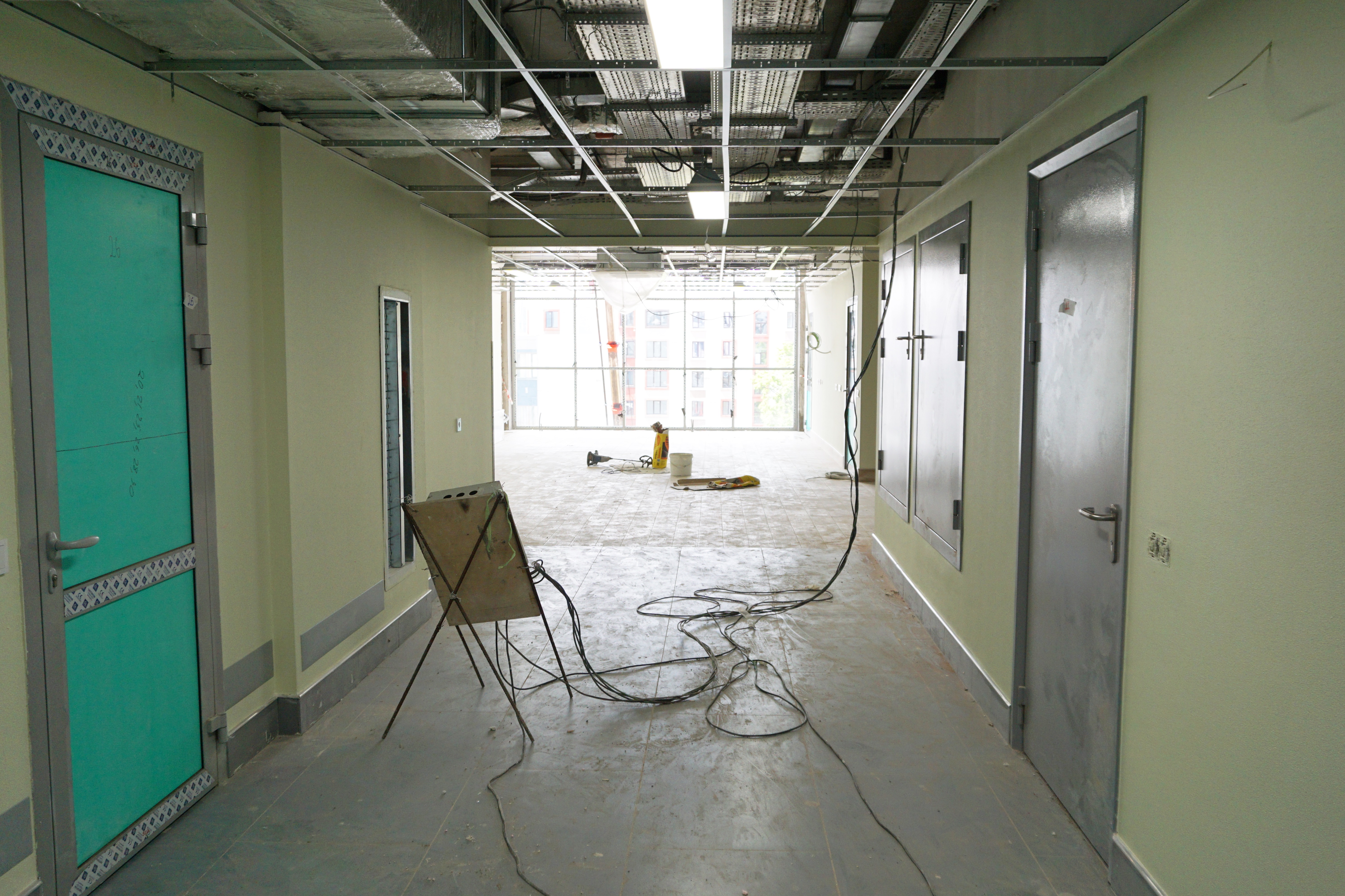 В шестиэтажном здании завершаются отделочные работы. Смонтировано 4 лифта, на всех этажах рабочие установили поручни для людей с ограниченными возможностями здоровья. Большинство палат уже практически готовы, осталось только провести генеральную уборку и установить кровати.