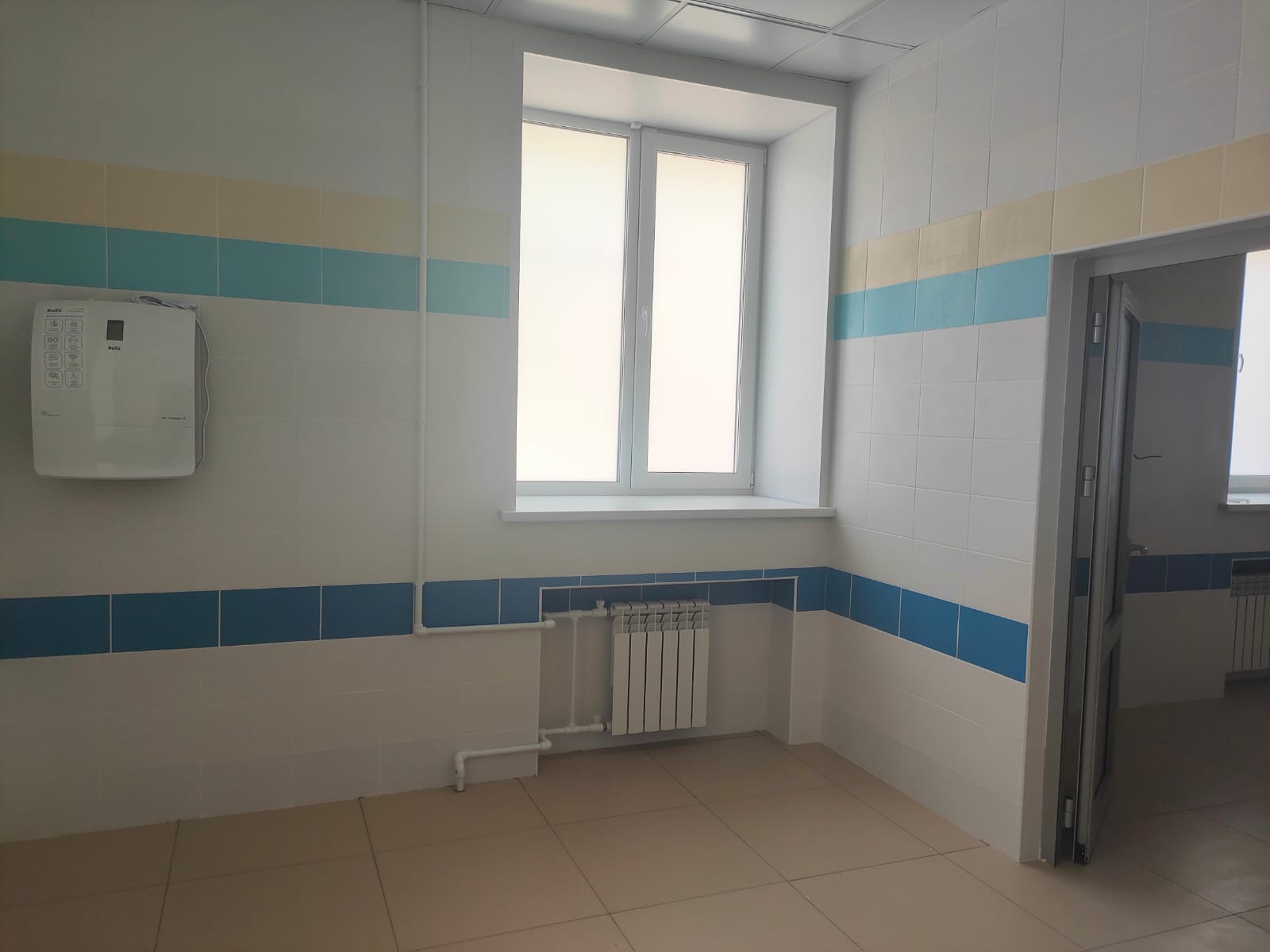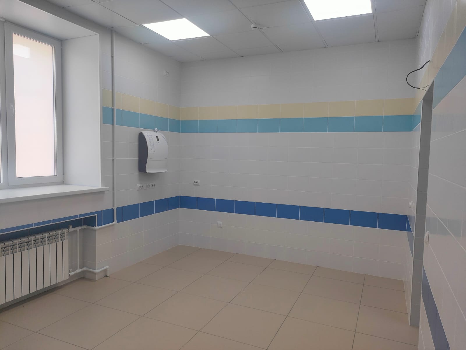 В ходе капитального ремонта полностью заменили окна и двери, внутреннюю и внешнюю облицовку стен, сделали новую стяжку пола и уложили новое напольное покрытие, установили навесные потолки. Все ремонтные работы уже завершены. Теперь имеются современные, комфортные процедурный кабинет, смотровые, предоперационный блок и др.