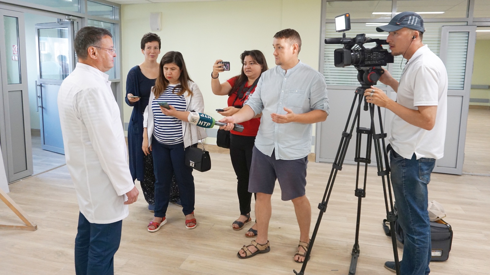 Спросили журналисты и о кадрах. Марс Мустафин отметил, что работать в Центре будут уже существующие отделения с уже сложившимися коллективами, однако, в больнице очень ждут молодых врачей, ведь теперь НЦРМБ будет привлекательна для специалистов ещё и с технологической точки зрения. Здесь надеются, что врачей привлечёт новое оборудование и современные условия.
