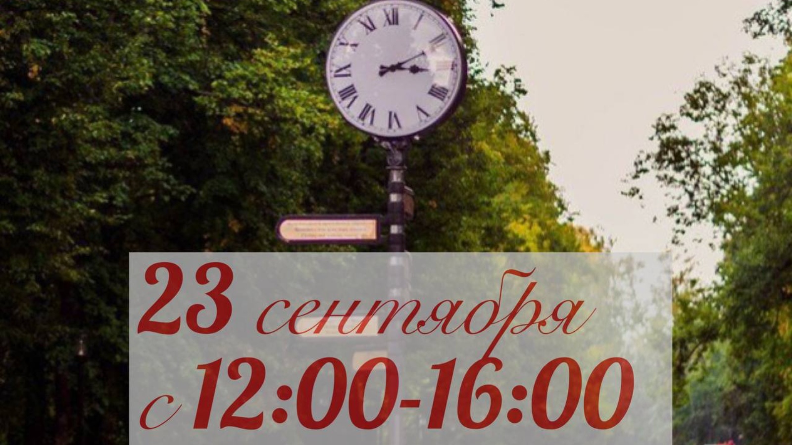 23 сентября с 12:00 ч. до 16:00ч. по адресам: ул.Пушкина 11 (около памятника «Часы»)