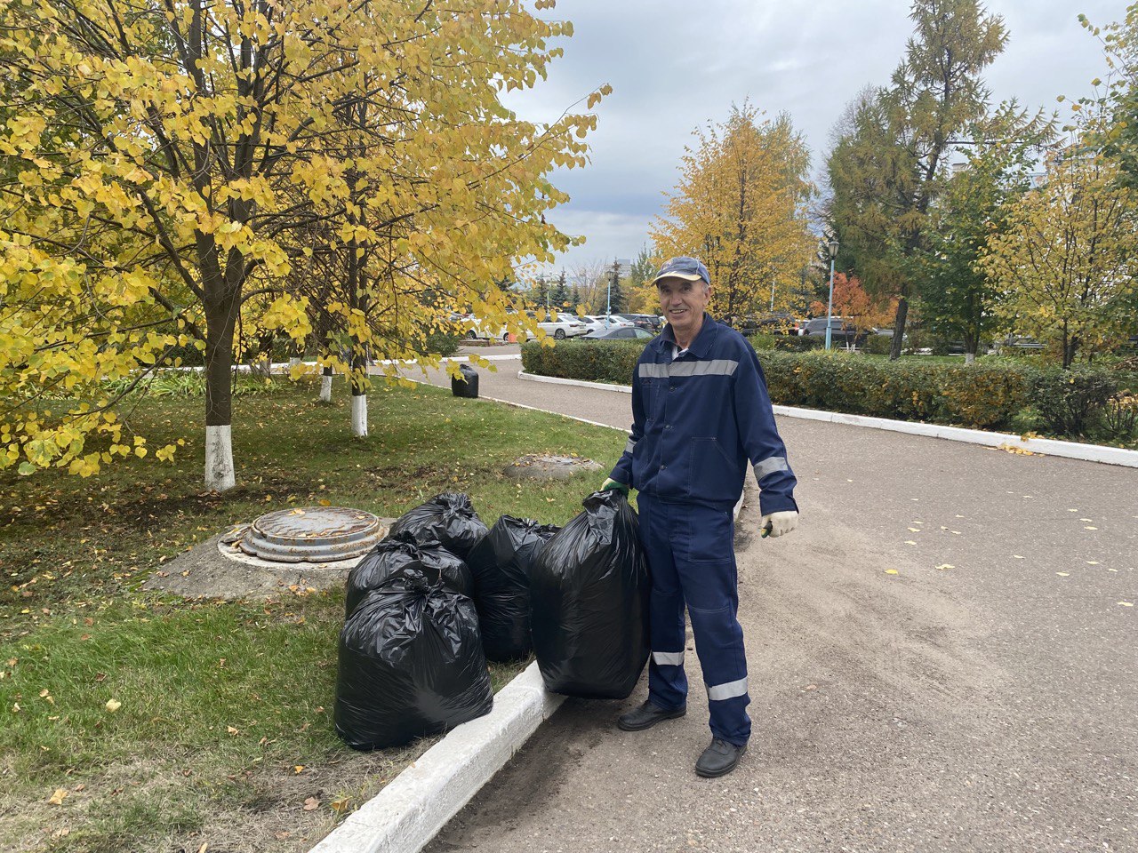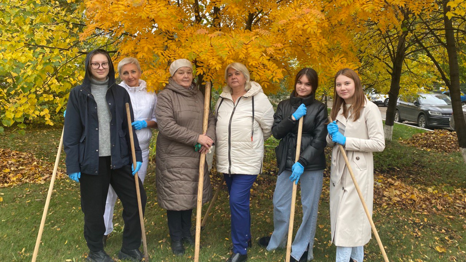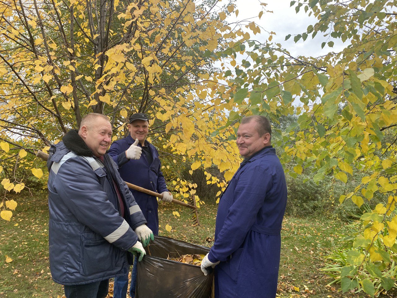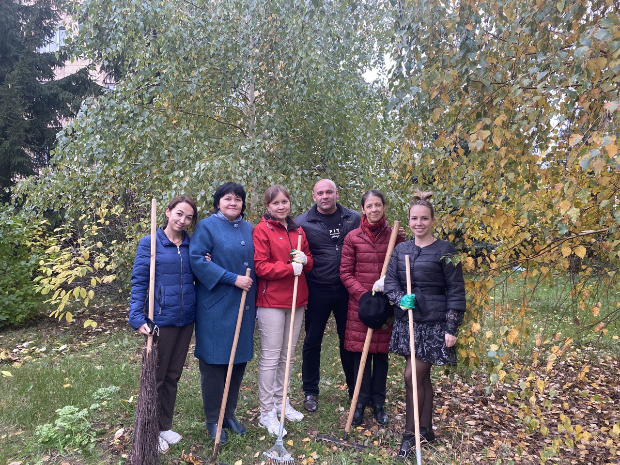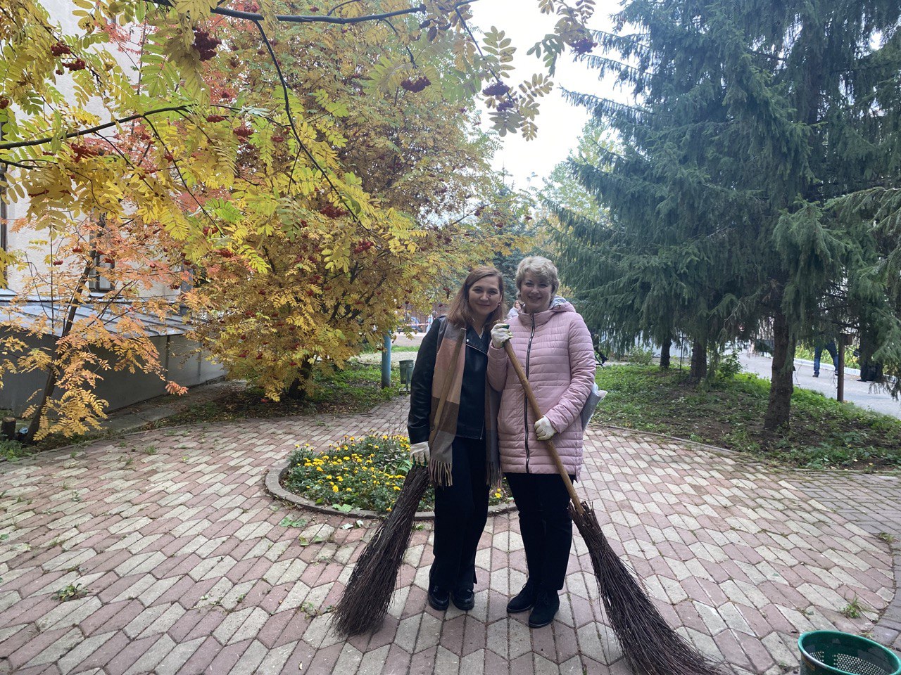 Осенний день способствовал отличному настроению, все работали дружно и весело: быстро убрали территорию от мусора и сухих листьев, привели в порядок клумбы и газоны.