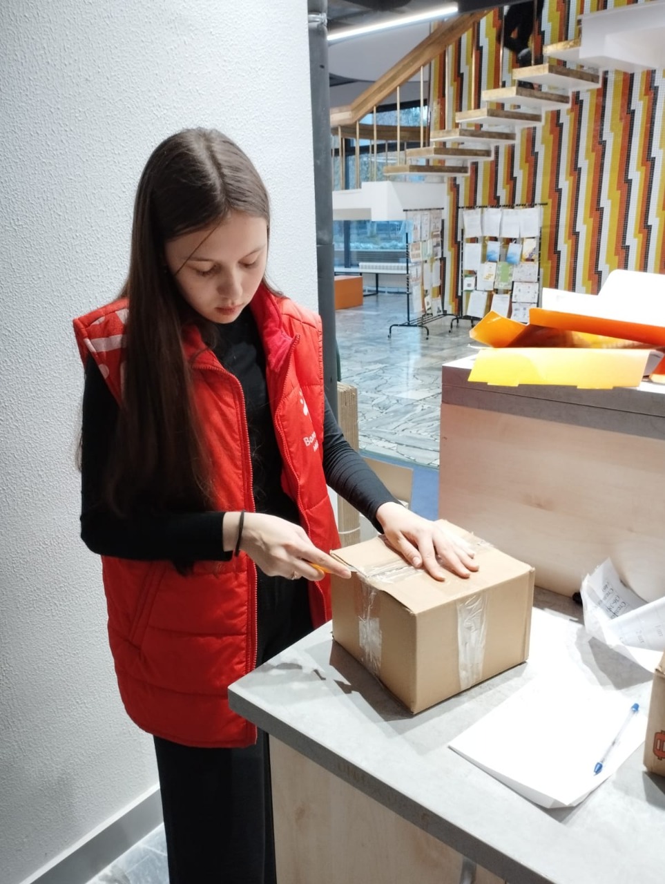 Дети из художественной школы рисуют рисунки: про родину, дом и природу. Волонтеры аккуратно складывают рисунки в каждую коробку, и туда же кладут записки, написанные от руки, с добрыми пожеланиями нашим защитникам.