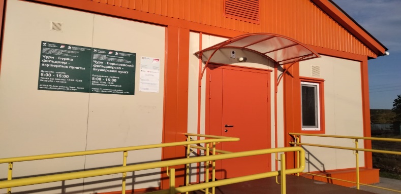 Чуру- Барышевский ФАП Апастовской ЦРБ в ближайшее время подключат к газопроводу. Новое здание построено в этом году по программе модернизации первичного звена здравоохранения национального проекта «Здравоохранение».
