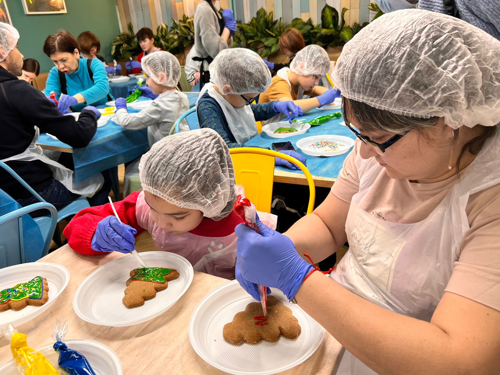 На празднике дети увлекательно разрисовывали имбирные елочки и разукрашивали яркими пищевыми красками, посыпая их разноцветным конфитюром. Кроме того дети пели песни и рассказали новогодние стихотворения, за что и получили заветные подарки от Дедушки Мороза