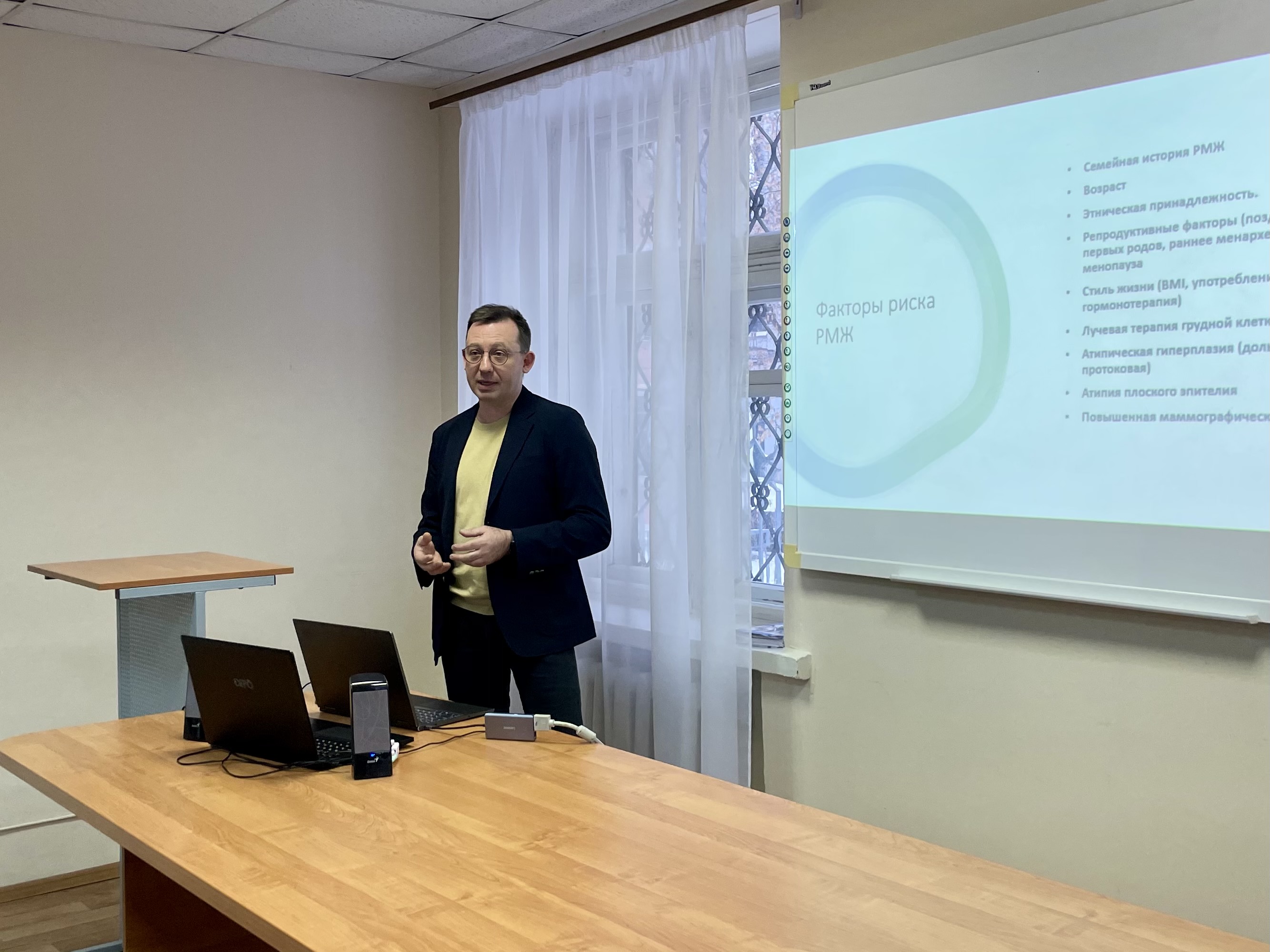 Альберт Гимранов привел статистику заболеваемости раком молочной железы и рассказал о классификации, диагностике и факторах риска развития заболевания.