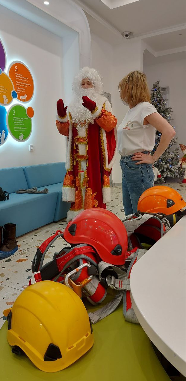 Ежегодно поздравлять детей вот таким необычным способ уже стала доброй традицией. Для детей спуск Деда Мороза с крыши поистине настоящее волшебство. Главный волшебник спустился с крыши в валенках и тулупе на специальном тросе.