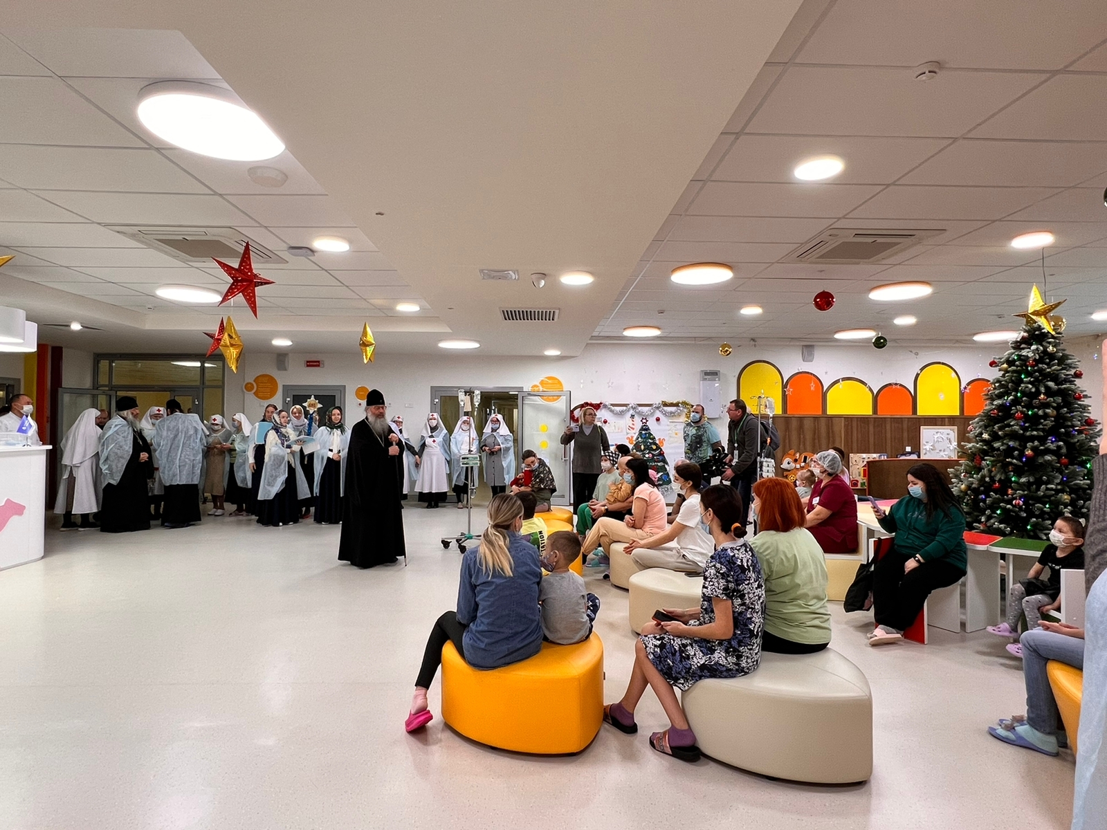 Владыка поздравил детей и взрослых с Рождеством Христовым и вручил сладкие подарки пациентам и медицинскому персоналу ДРКБ. Вниманию собравшихся был представлен праздничный концерт, подготовленный воспитанниками Казанской духовной семинарии. Семинарский хор исполнил рождественские колядки.