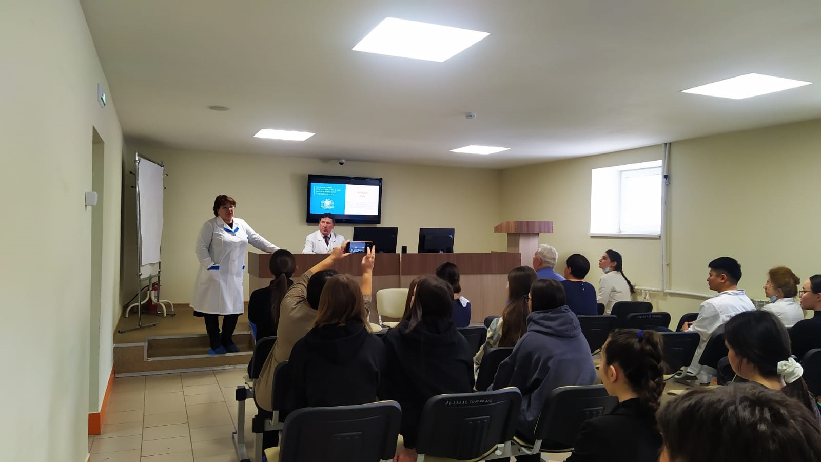 С презентацией КГМУ выступили студенты Салихова Ильзида(6 курс лечебное дело) и Исмагилова Тансылу (2 курс, педиатрия). Дети с большим интересом слушали выступление врача-ветерана с 53-летним трудовым стажем Мавлявиева Ш. С.