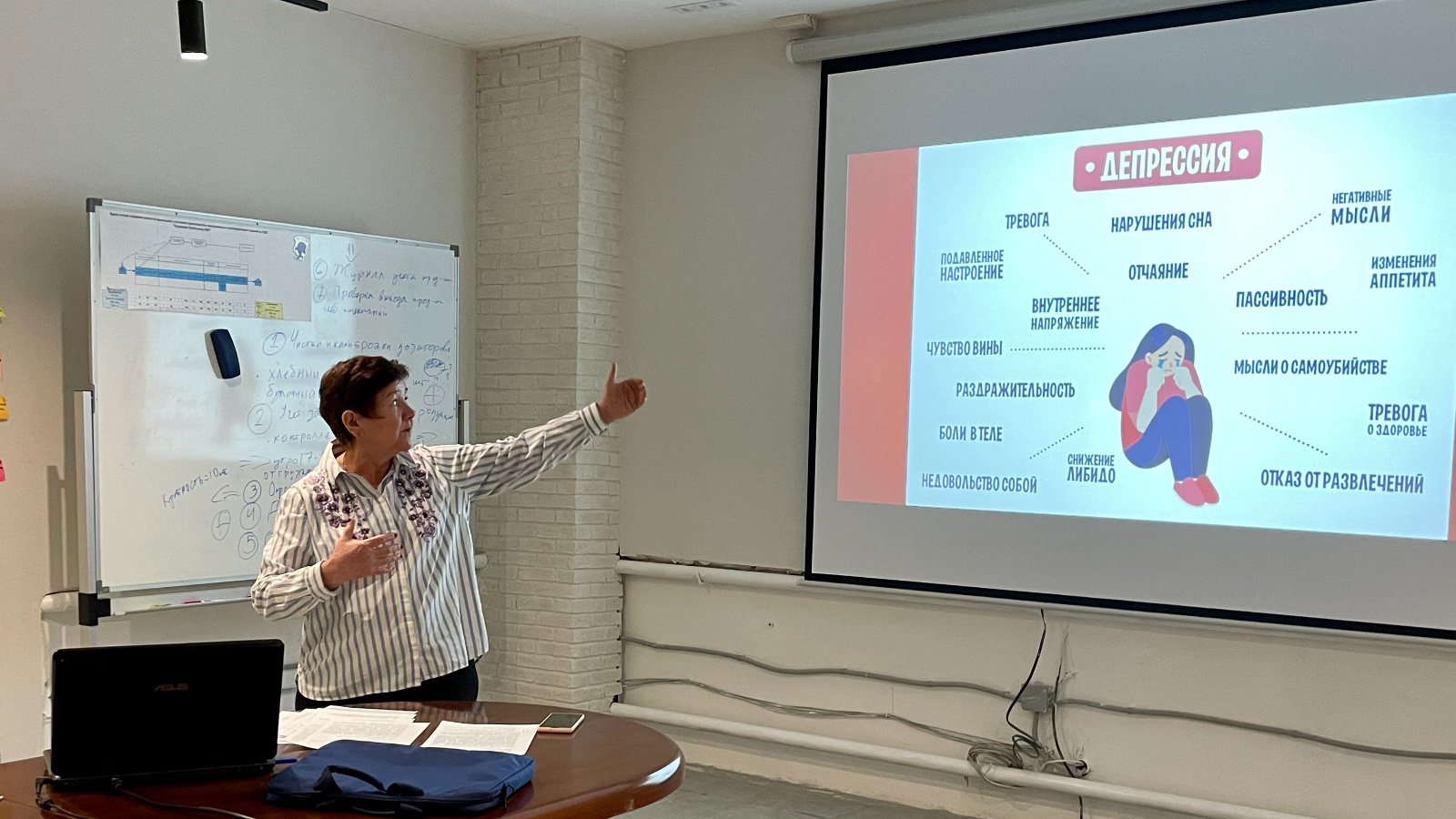 Перед работниками выступила заслуженный врач РТ, психотерапевт ГАУЗ «РЦОЗ и МП» Гульфия Гаянова. Она рассказала о симптомах депрессии, причинах ее возникновения и о том, как предотвратить развитие депрессии.