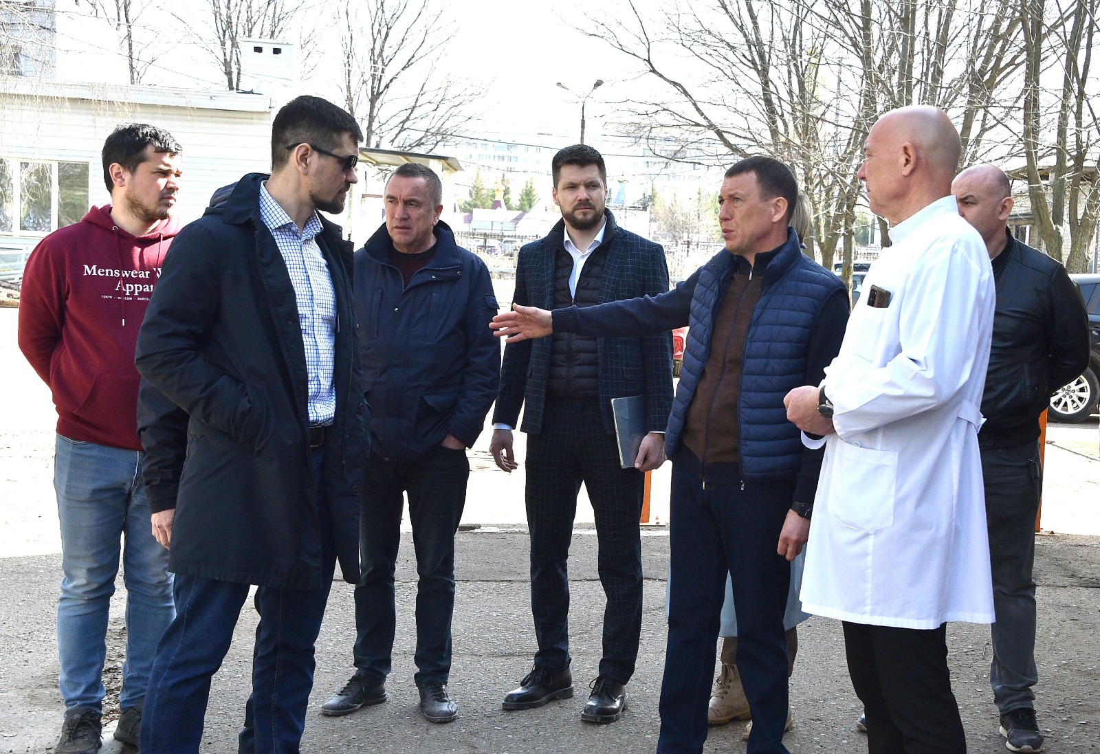 Мэр Нижнекамска Рамиль Муллин внимательно ознакомился с ходом ремонта, во время обхода больницы его интересовали сроки выполнения всех работ, отдельное внимание он уделил фасаду. По его словам, весь больничный городок должен быть выполнен в едином стиле. Специалисты заверили, что ремонт фасада ведётся параллельно с внутренней отделкой здания. Рамиль Муллин попросил руководителей особое внимание уделить маршрутизации пациентов, удобствам для «мужественных людей», а также благоустройству территории. Также он поставил задачу проработать вопрос организации общественного транспорта на улице Ахтубинской.
