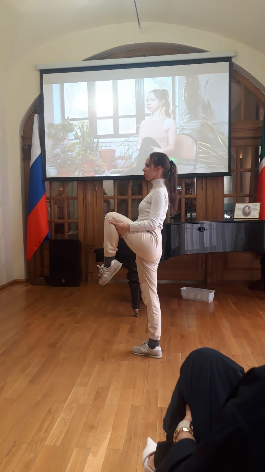 Главный врач поликлиники Ольга Багданова совместно с профессором кафедры неврологии и реабилитации КГМУ Фаридой Тахавиевой презентовали проект производственной гимнастики сотрудникам Национального музея РТ.