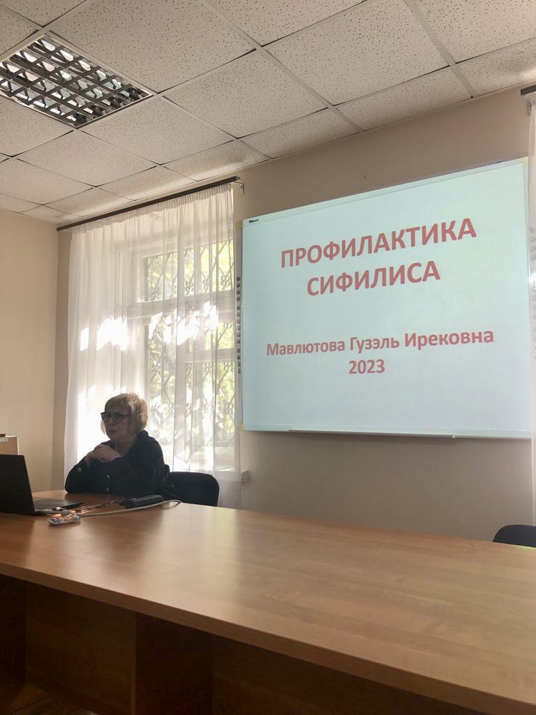 Гузель Мавлютова, в связи с подъемом заболеваемости сифилисом в России, посвятила свое выступление профилактике сифилиса, рассказав слушателям о путях передачи, симптомах, диагностике и методах профилактики заболевания.