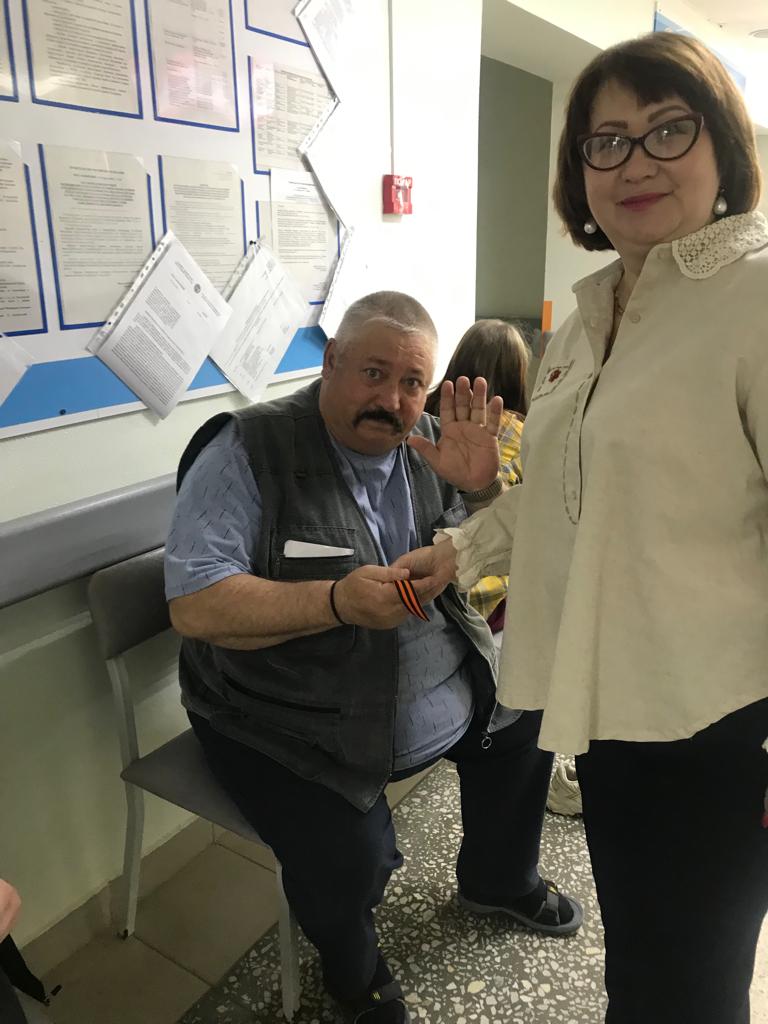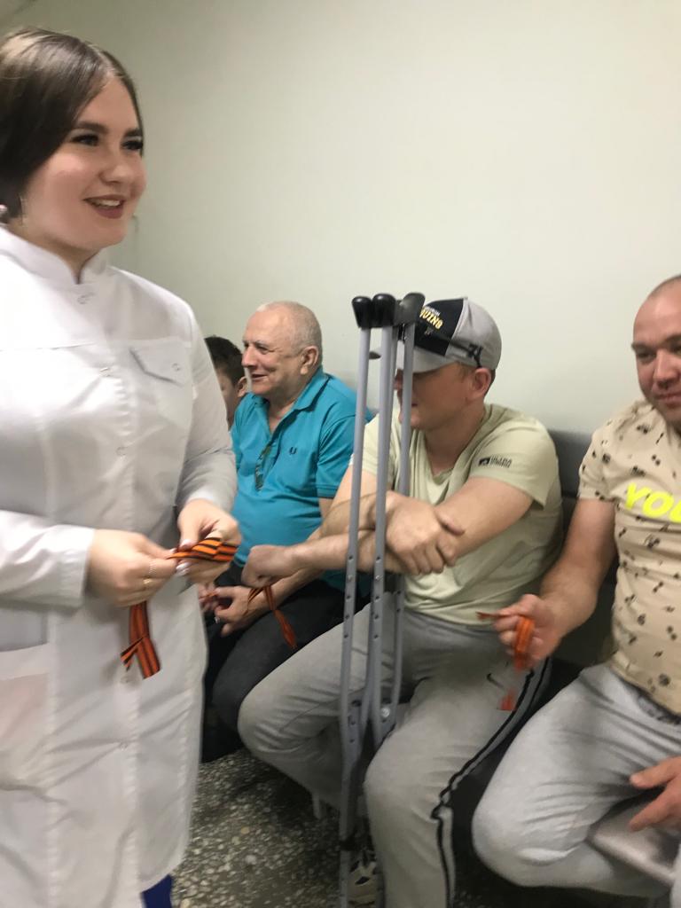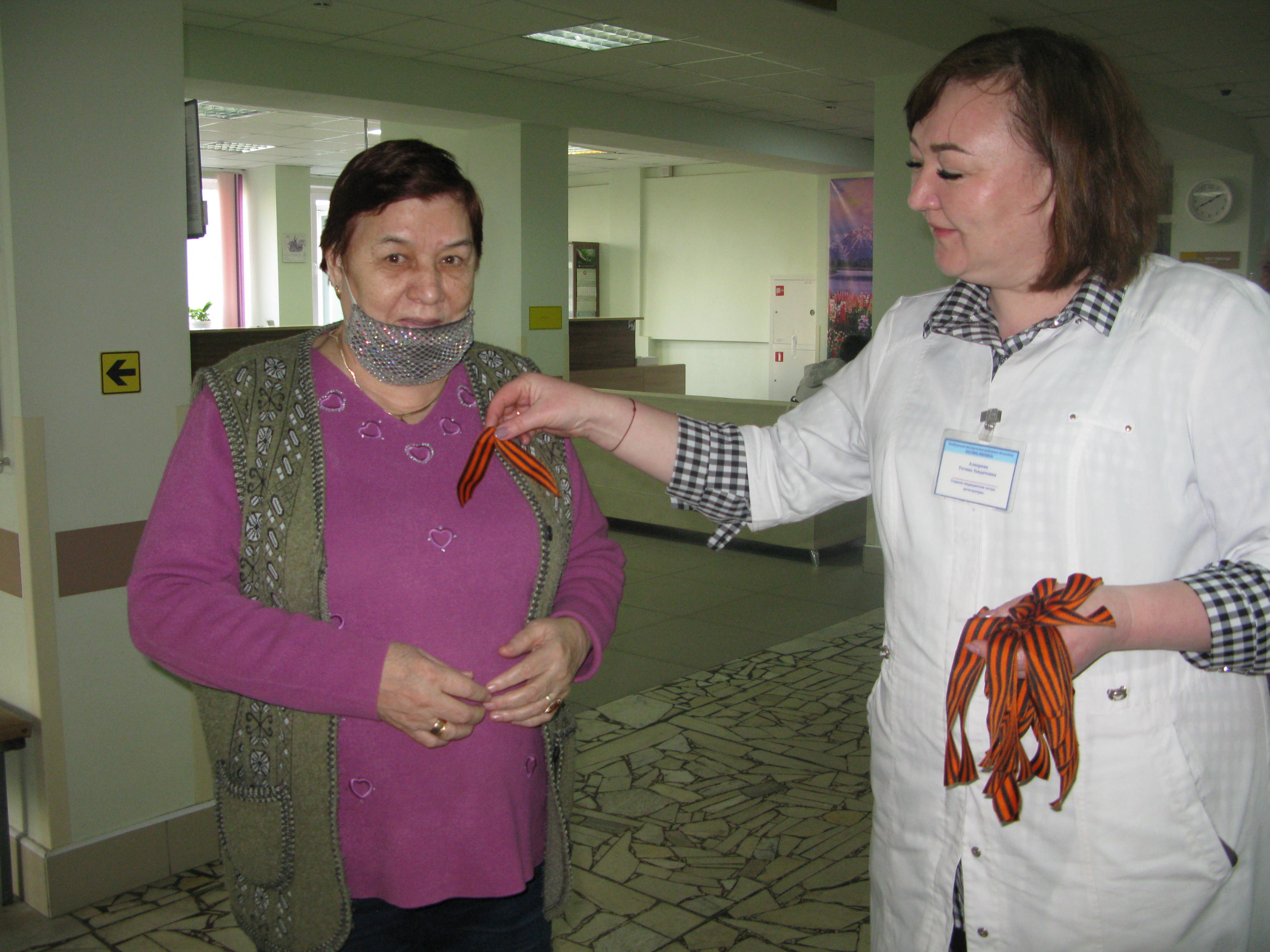 Со словами «Примите Георгиевскую ленточку - как главный символ Памяти и воинской славы» - ее вручили 60 посетителям. Этот знаковый атрибут как дань уважения подвига ветеранов Великой Отечественной войны мог получить любой желающий. Такая раздача памятных ленточек в Елабужской ЦРБ была организована впервые. Инициаторами стали руководство и профком ЕЦРБ.