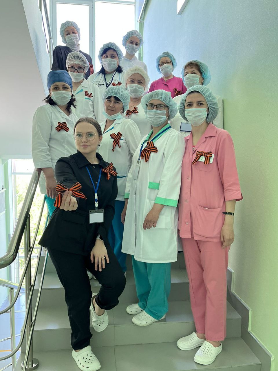 Для каждого россиянина георгиевская ленточка является символом героизма и воинской доблести. Из поколения в поколение передается эта эстафета народной памяти, и сотрудники Республиканского клинического противотуберкулезного диспансера с радостью и гордостью за своих отцов, дедов и прадедов присоединились к Всероссийской акции. Так медицинские работники диспансера отдают дань памяти людям, которые, не жалея себя, сражались на передовой, денно и нощно трудились на благо фронта, отдавая все ради Великой Победы. Это справедливо и для медицинских работников республики, которые самоотверженно выполняли свой врачебный долг во время Великой Отечественной войны. Праздник 9 мая – еще один повод сказать им «спасибо».
