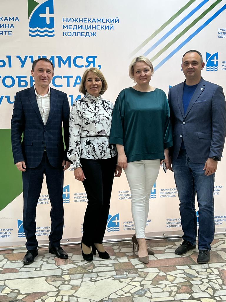 В Нижнекамском медицинском колледже прошла встреча выпускников с представителями Детской городской больницы с перинатальным центром Нижнекамска. На встречу пришли главный врач Алексей Толстиков и главная медицинская сестра Ильсияр Мотыгуллина.