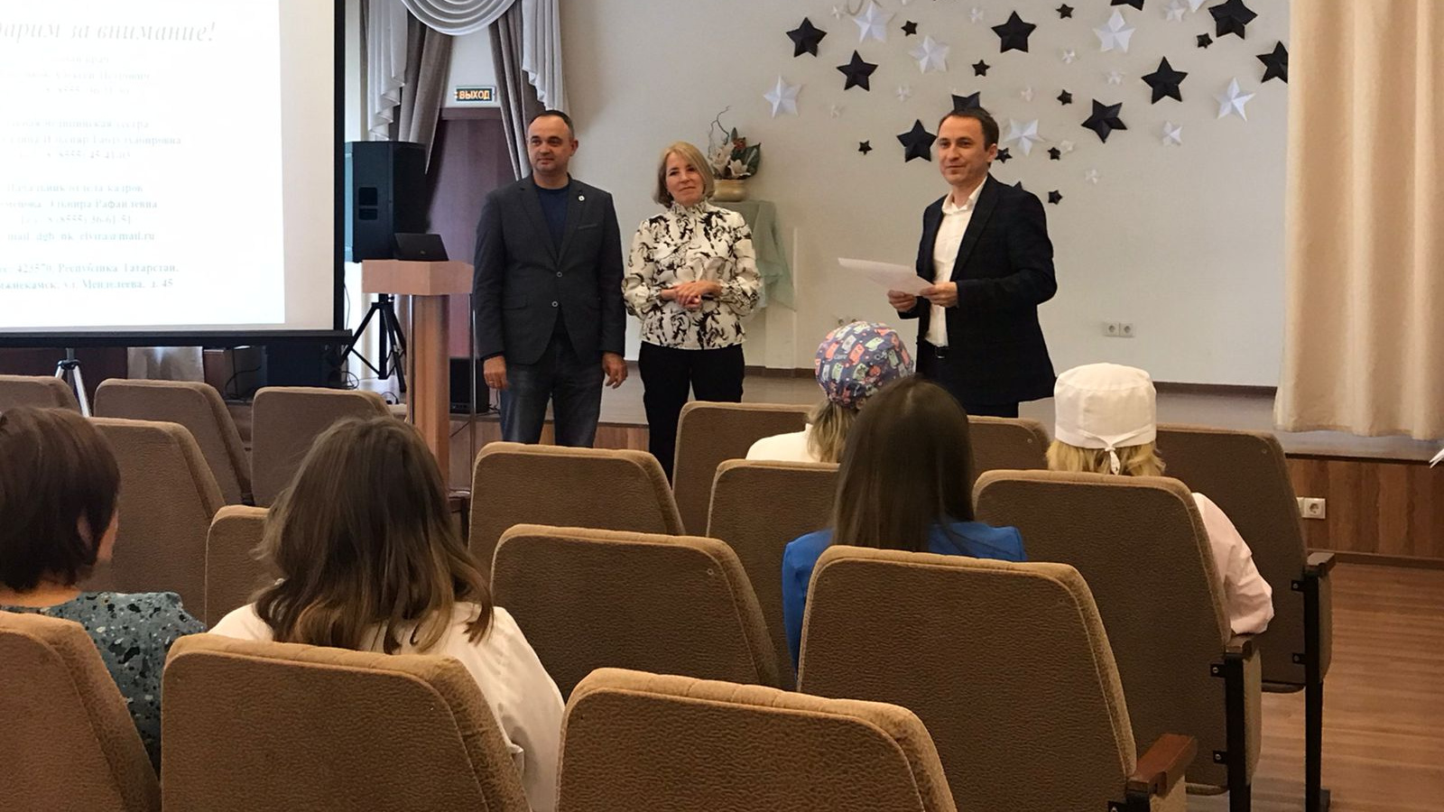Студентам показали фильм о больнице, а также подробно рассказали обо всех тонкостях работы в медицинском учреждении, в детских поликлиниках, роддоме, женской консультации. Выпускников познакомили с вакансиями, условиями работы, процедурой адаптации молодых специалистов, оплатой труда и многими другими, интересующим их вопросами.