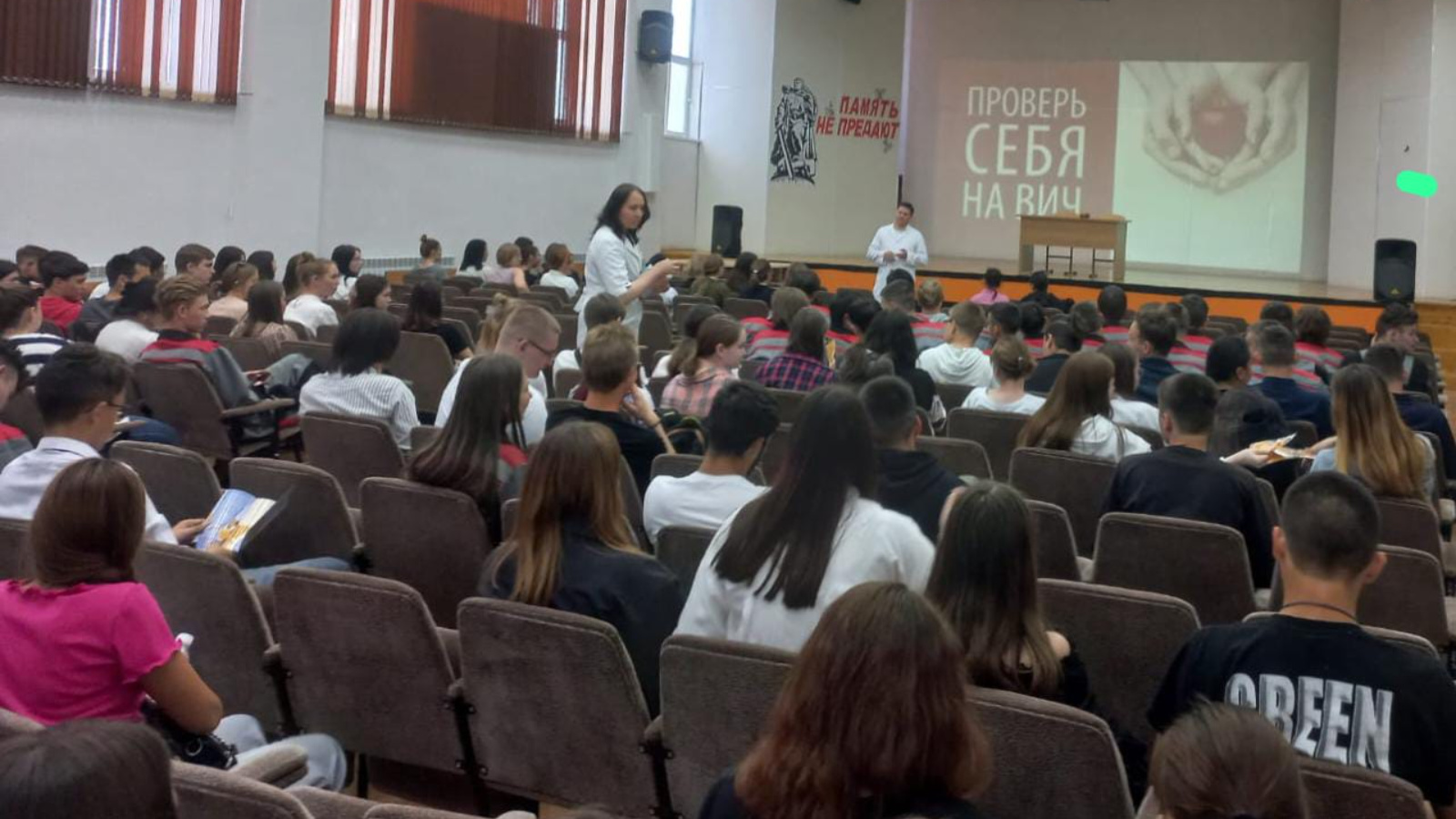 Перед собравшимися врач – эпидемиолог Галеев Айрат выступил с лекцией на тему «Что мы знаем о ВИЧ/СПИД?». В своем выступлении рассказал о путях передачи ВИЧ, профилактике заражения, методах обследования и историю распространения ВИЧ в мире. Так же объяснил о недопустимости дискриминации людей с положительным ВИЧ-статусом. В конце лекции провел небольшой опрос среди слушателей по вопросам профилактики ВИЧ. Медицинская сестра кабинета профилактики Ибрагимова Любовь организовала раздачу информационных буклетов и листовок среди учащихся колледжа, так же предоставила плакаты для медицинского кабинета колледжа. Фельдшера лаборанты Зиганшина Алсу и Хайриева Фаниля провели экспресс тестирование на ВИЧ всем желающим, обследование прошли 40 человек.